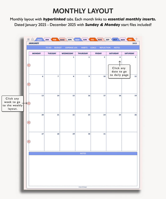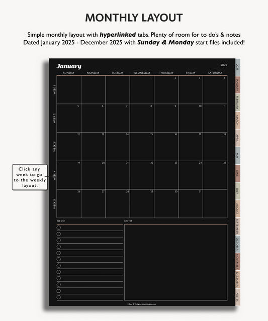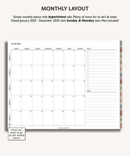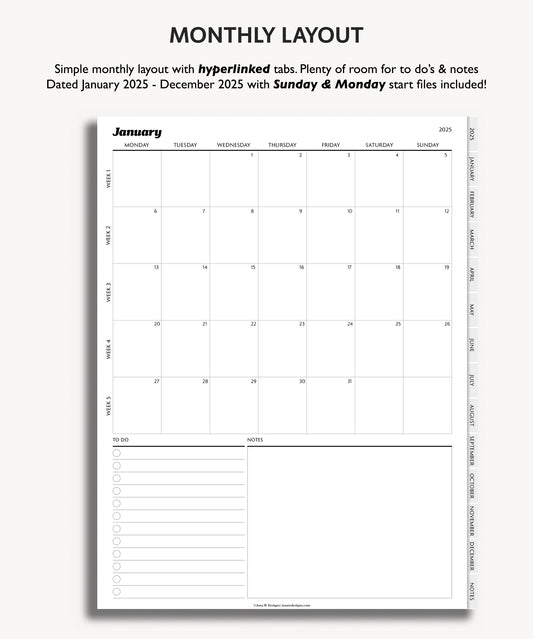 2025 Monthly Planner | Minimal Modern Simple Agenda