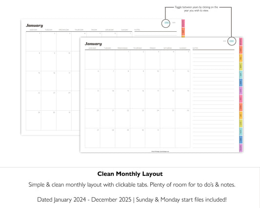 2024 - 2025 Simple 2 Year Monthly Digital Planner | Modern Minimal Collection