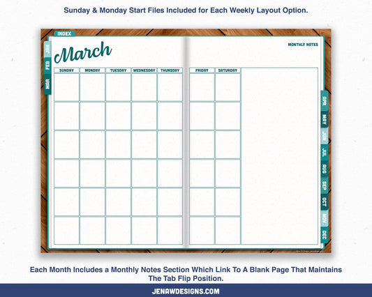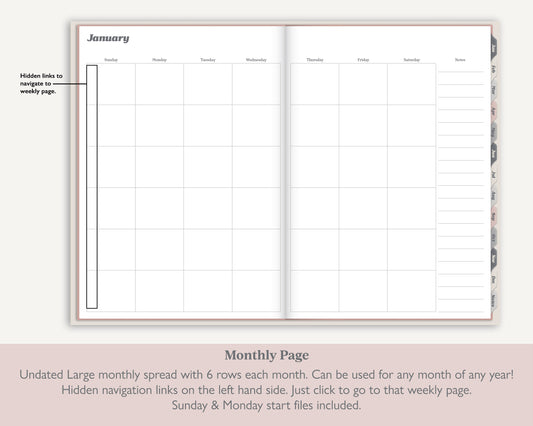 Undated Weekly Digital Planner with Flip Tabs