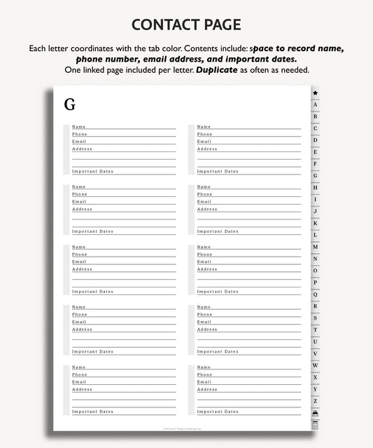 Minimal Digital Address Book | Hyperlinked PDF Contact Book