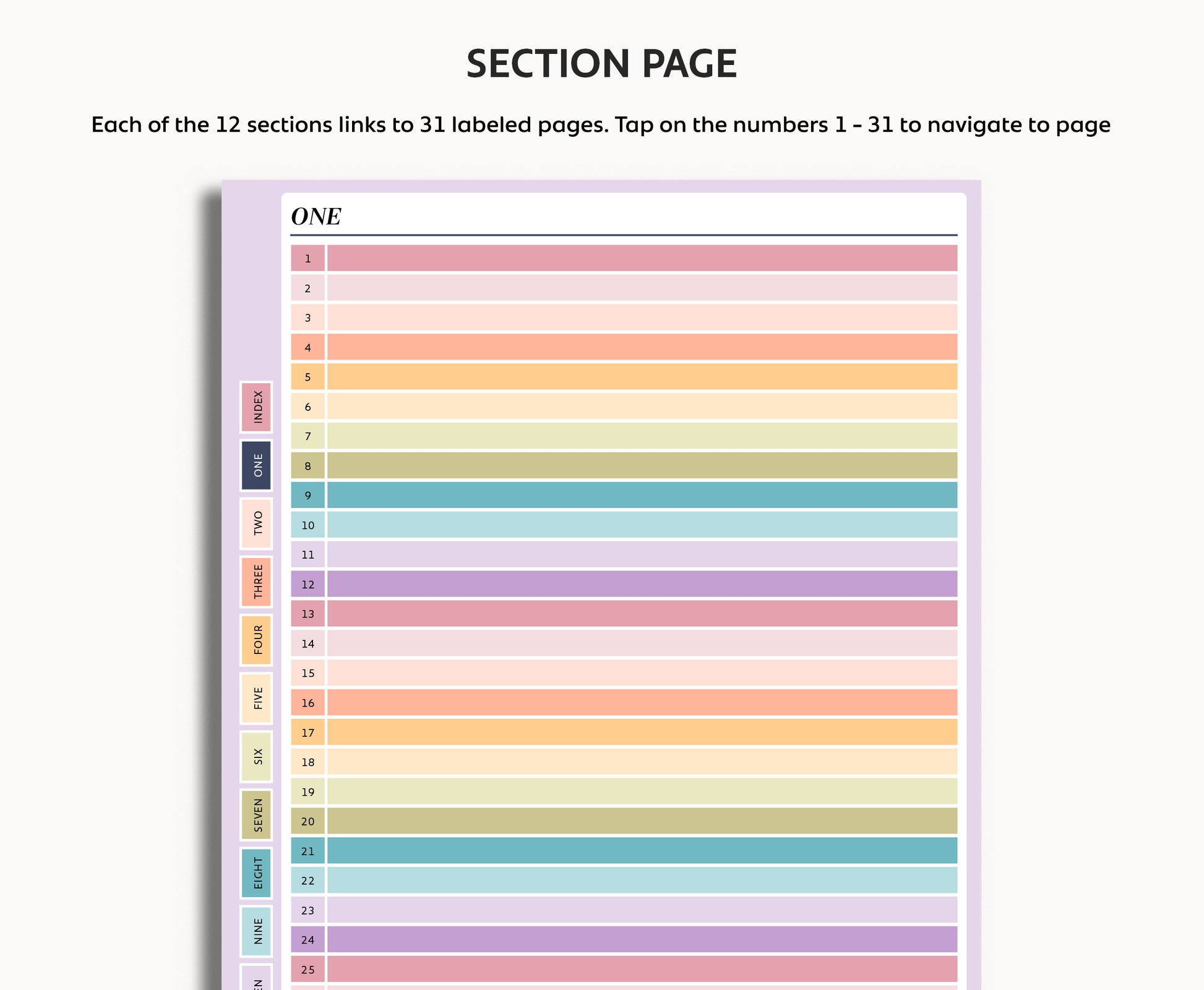 - 31 linked pages per section (372 total)