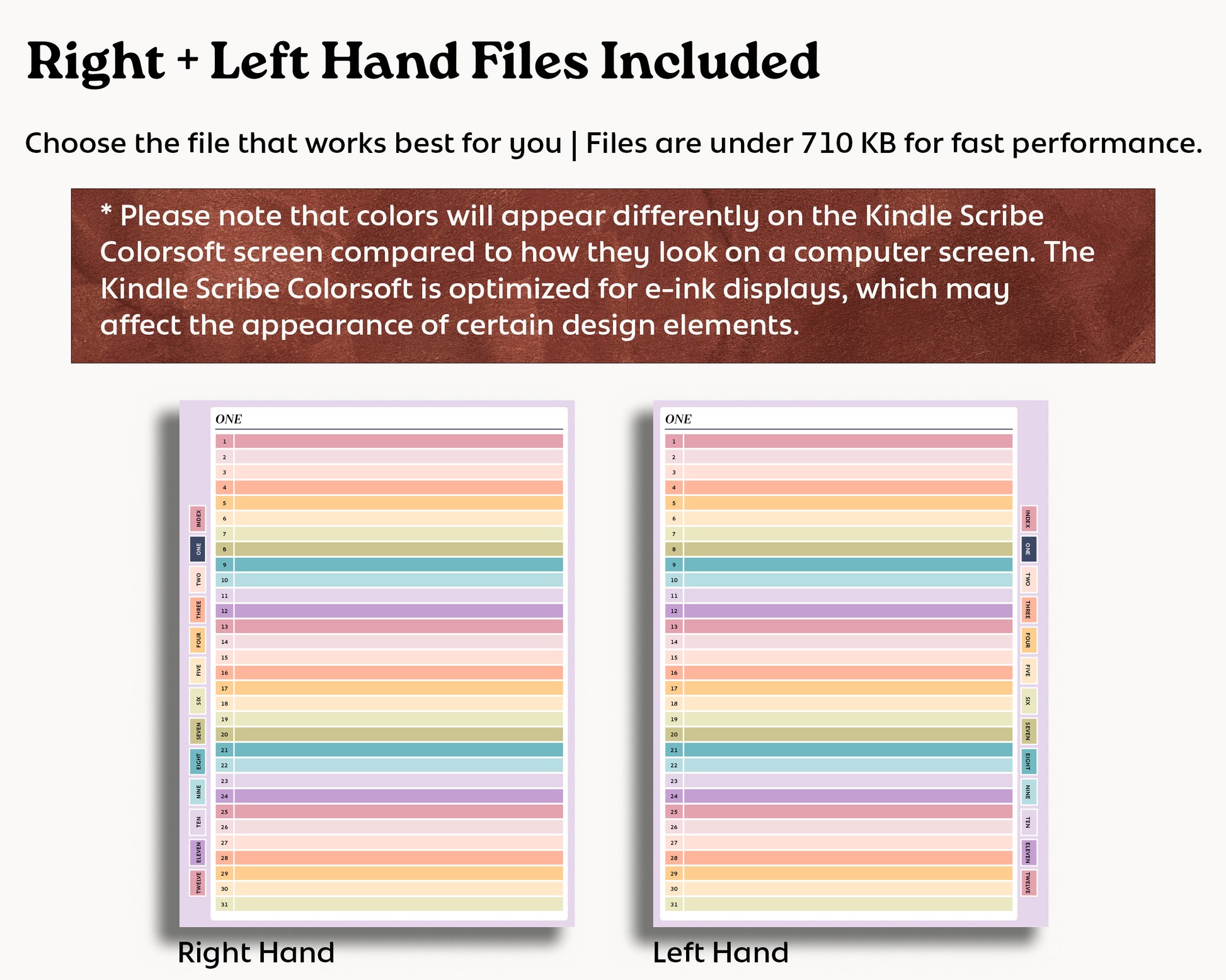 This high-quality pdf planner has a small file size of under 595 KB. Left and right-handed versions are included.