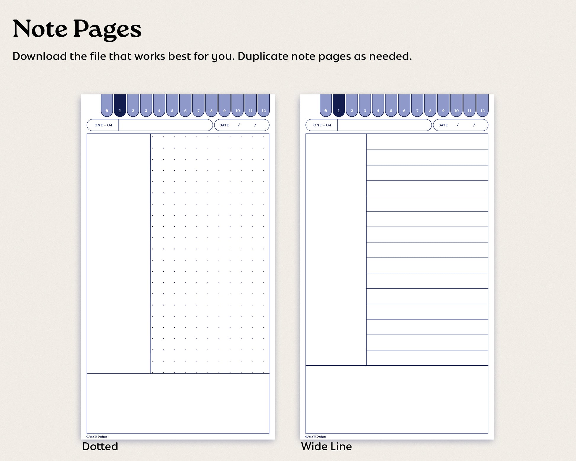 With 12 custom sections and 20 linked pages per section, you'll have 240 pages to capture your ideas with ease. Choose from five Cornell paper templates (blank, narrow rule, wide rule, dotted, and grid) to match your note-taking style. Each section is clearly labeled and designed for fast, seamless navigation, ensuring you stay focused on what matters most.