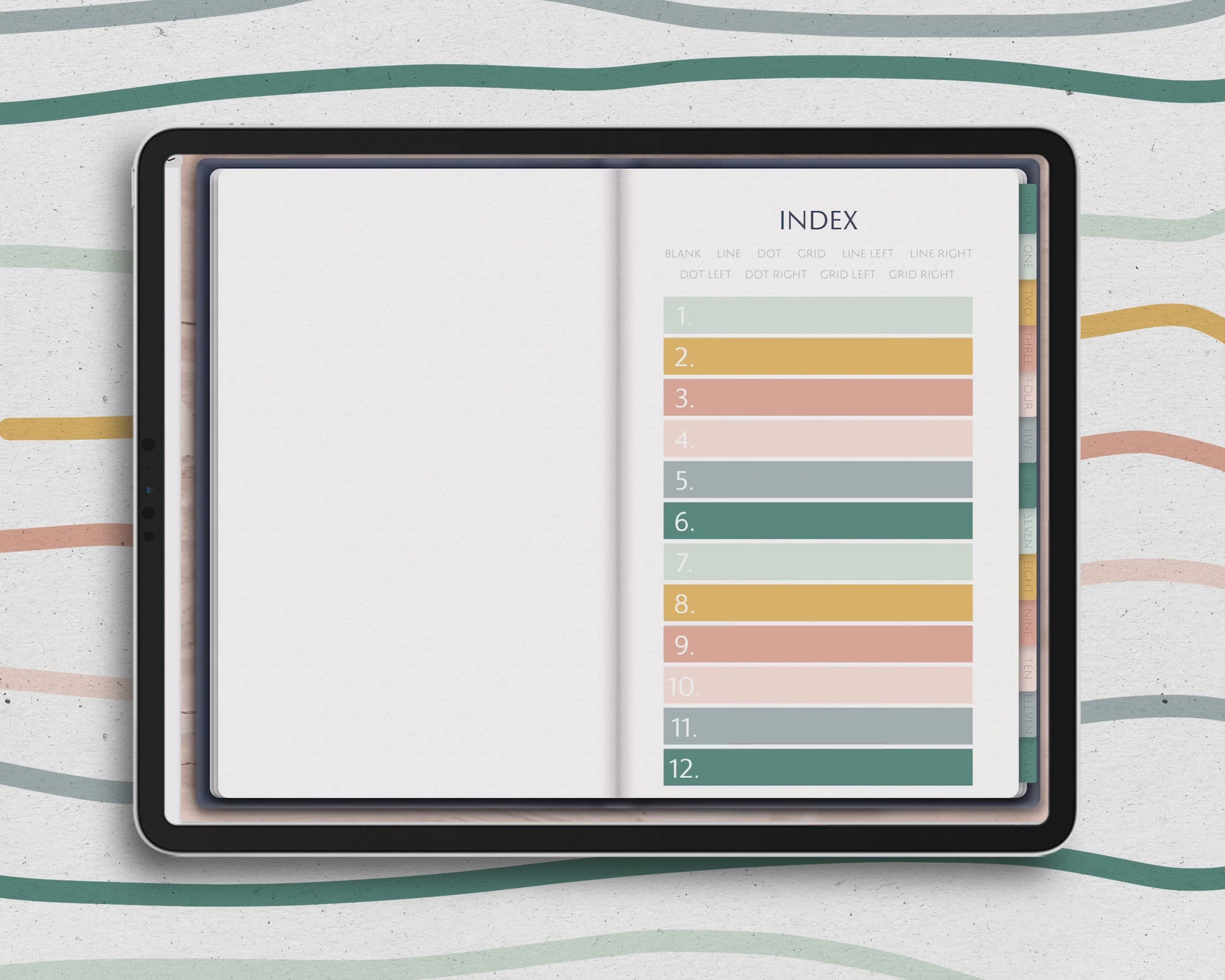 Take notes in a fun landscape 2 page digital notebook. This 12 subject hyperlinked tab notebook contains 10 paper styles to take notes as you need, when you need. Fun layout with maximum room for note-taking, to do lists, brain dumps and more!
