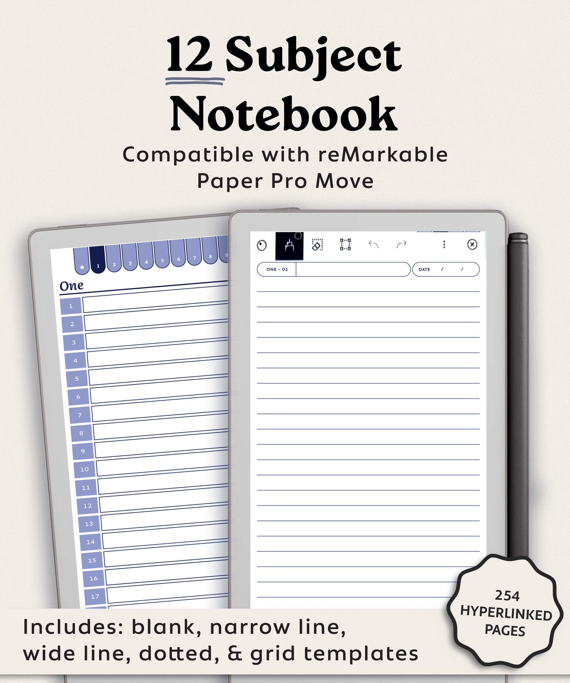 12 Subject Notebook | for reMarkable Paper Pro Move