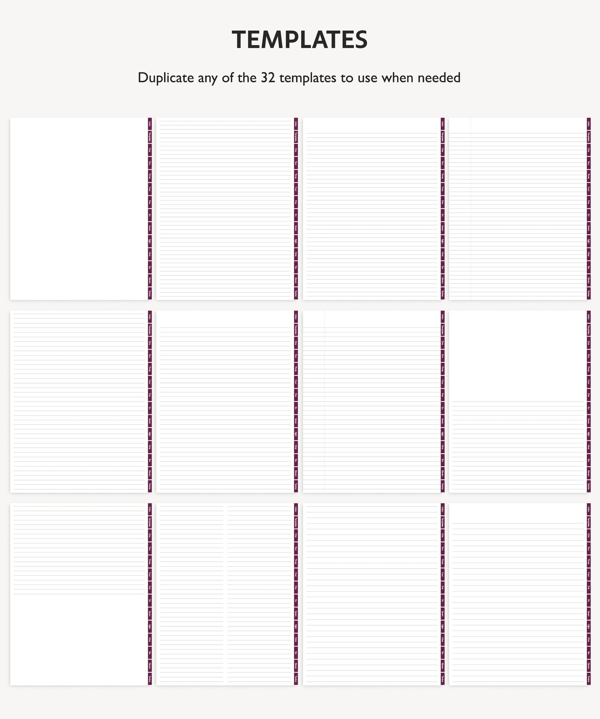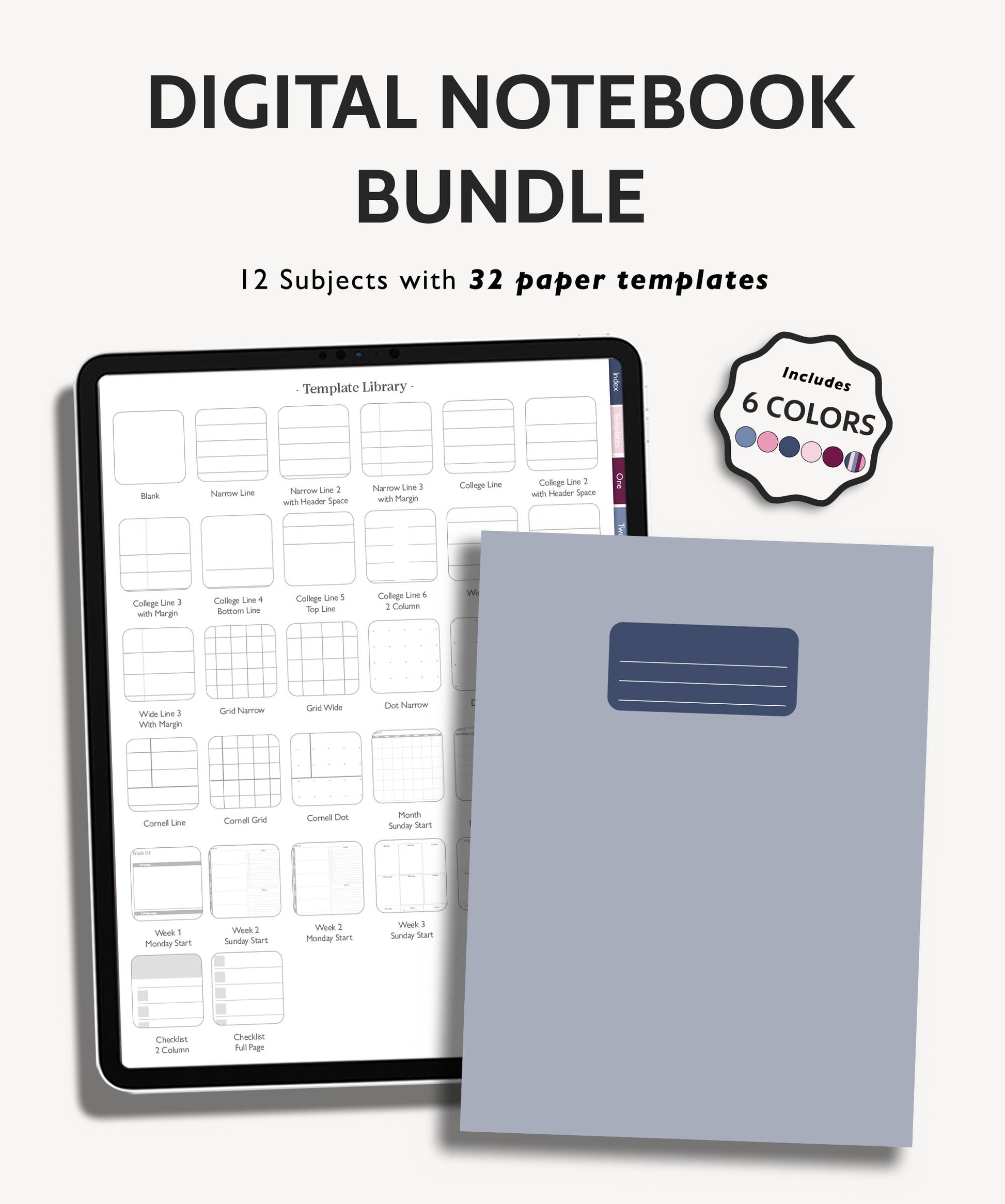 Record all of your notes and stay organized with a fun, colorful digital notebook bundle. These digital notebooks each includes 12 subjects with hyperlinked tabs and 32 paper templates. Duplicate any template and insert in any subject of your notebook to use over and over again!