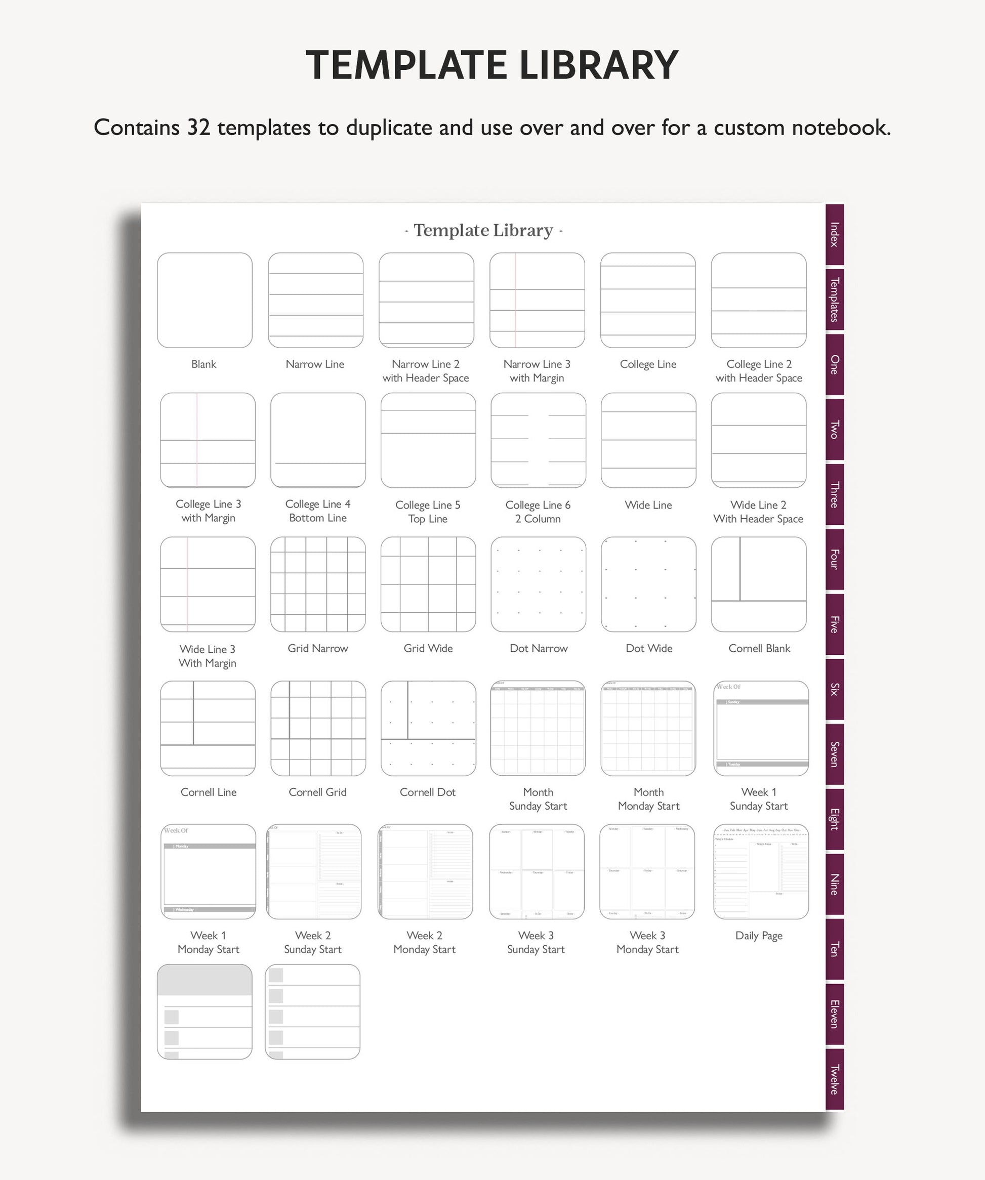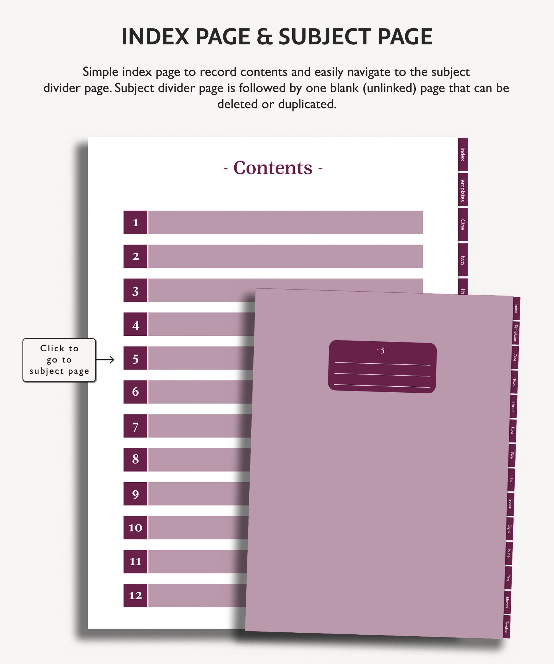 This paperless notebook template is designed to be used with an annotated hyperlink app such as GoodNotes.