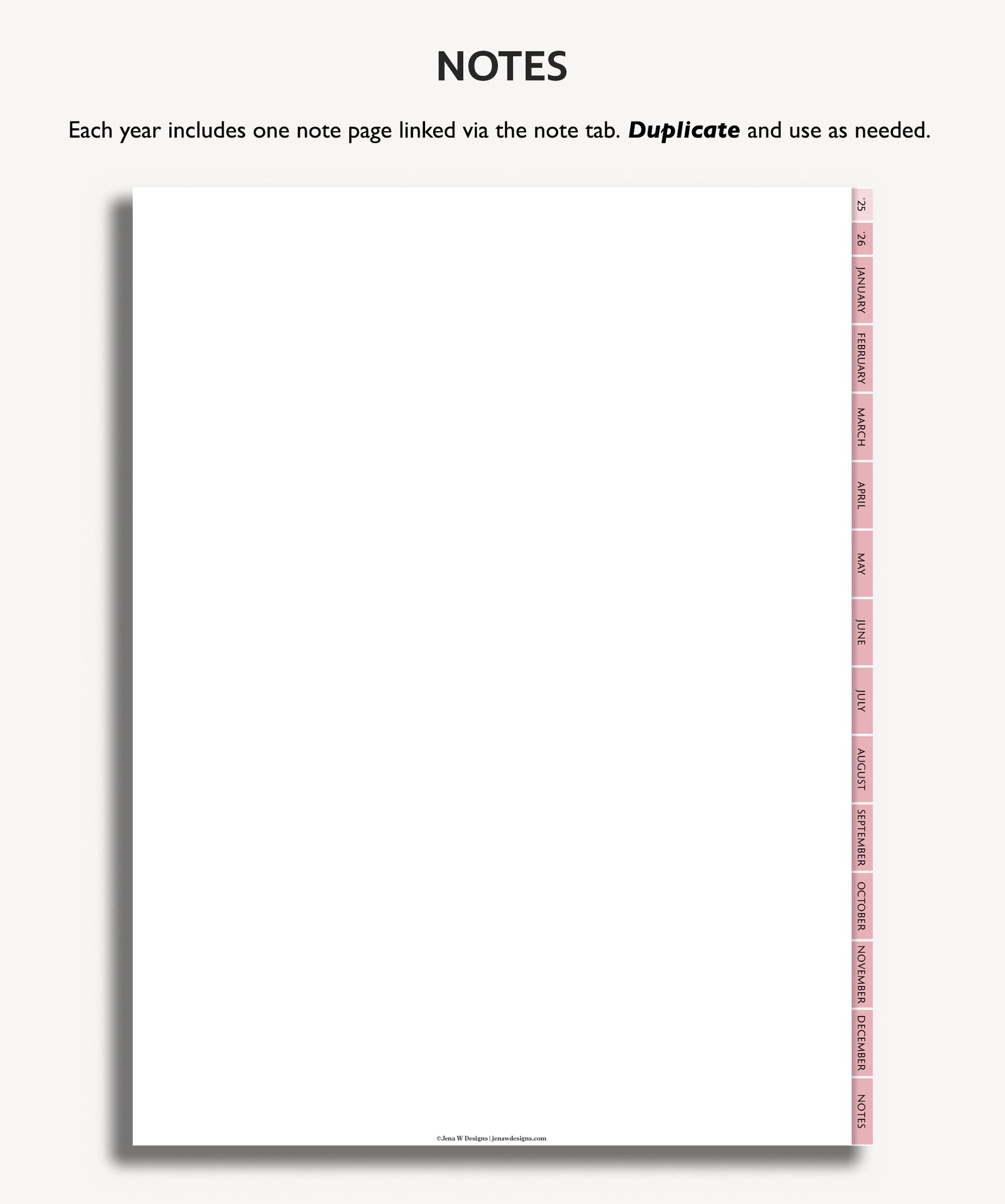 Perfect for those who appreciate a streamlined, distraction-free approach, this planner makes organizing your goals and schedules fast and stress-free. Download and get started with an efficient, clutter-free planning experience for the next two years.