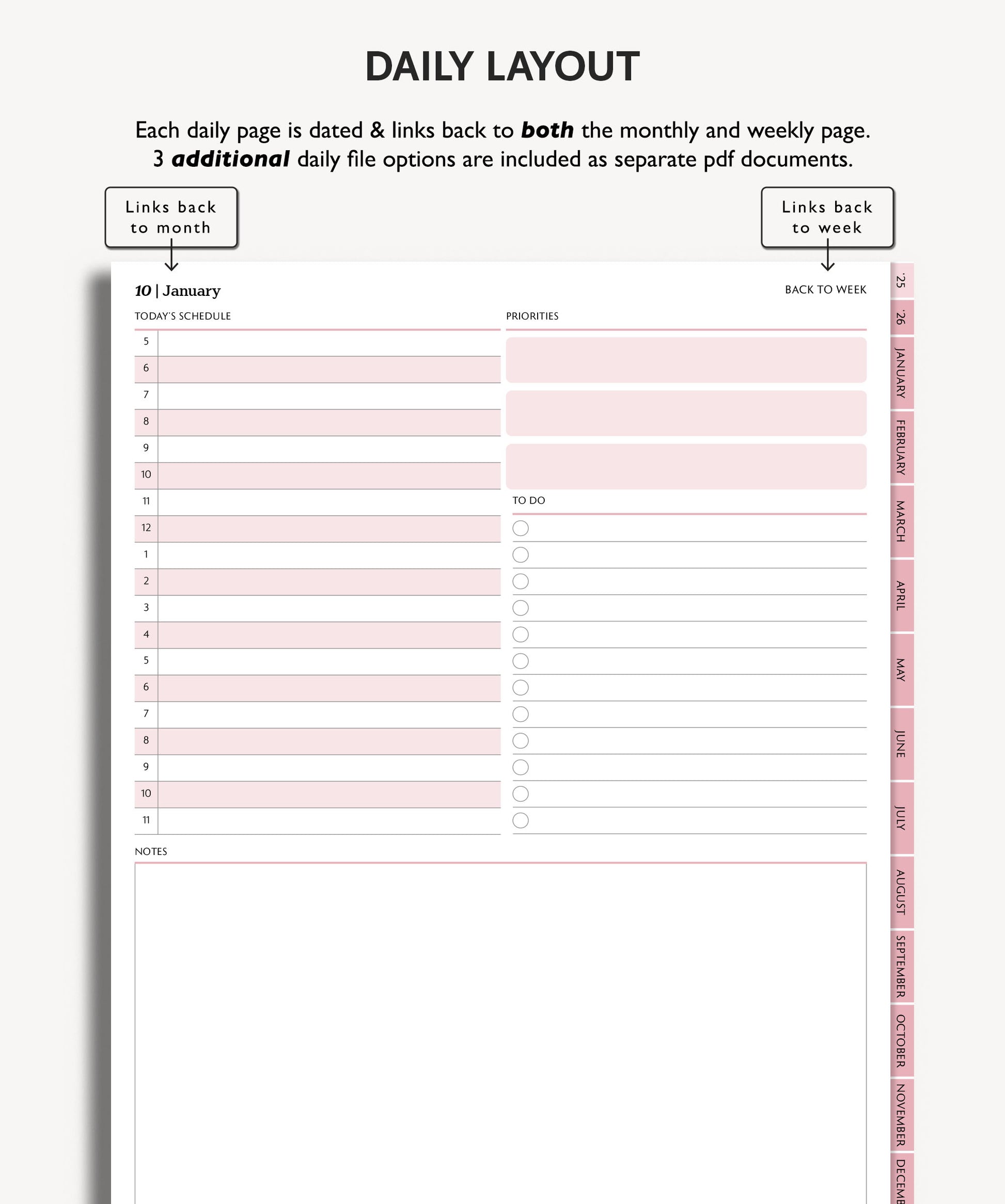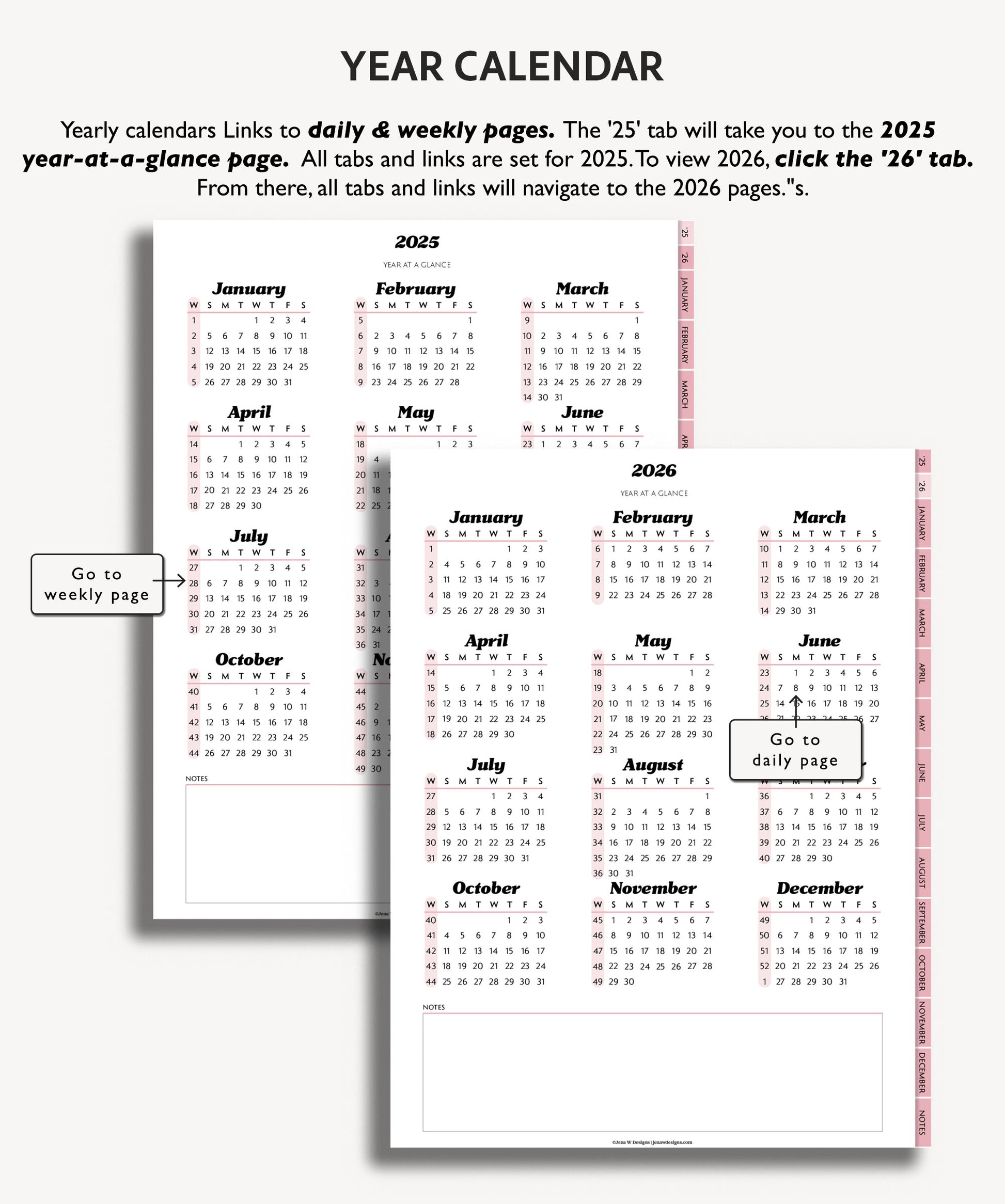 - Monthly, Weekly, & Daily Pages Dated January 2025 - December 2026