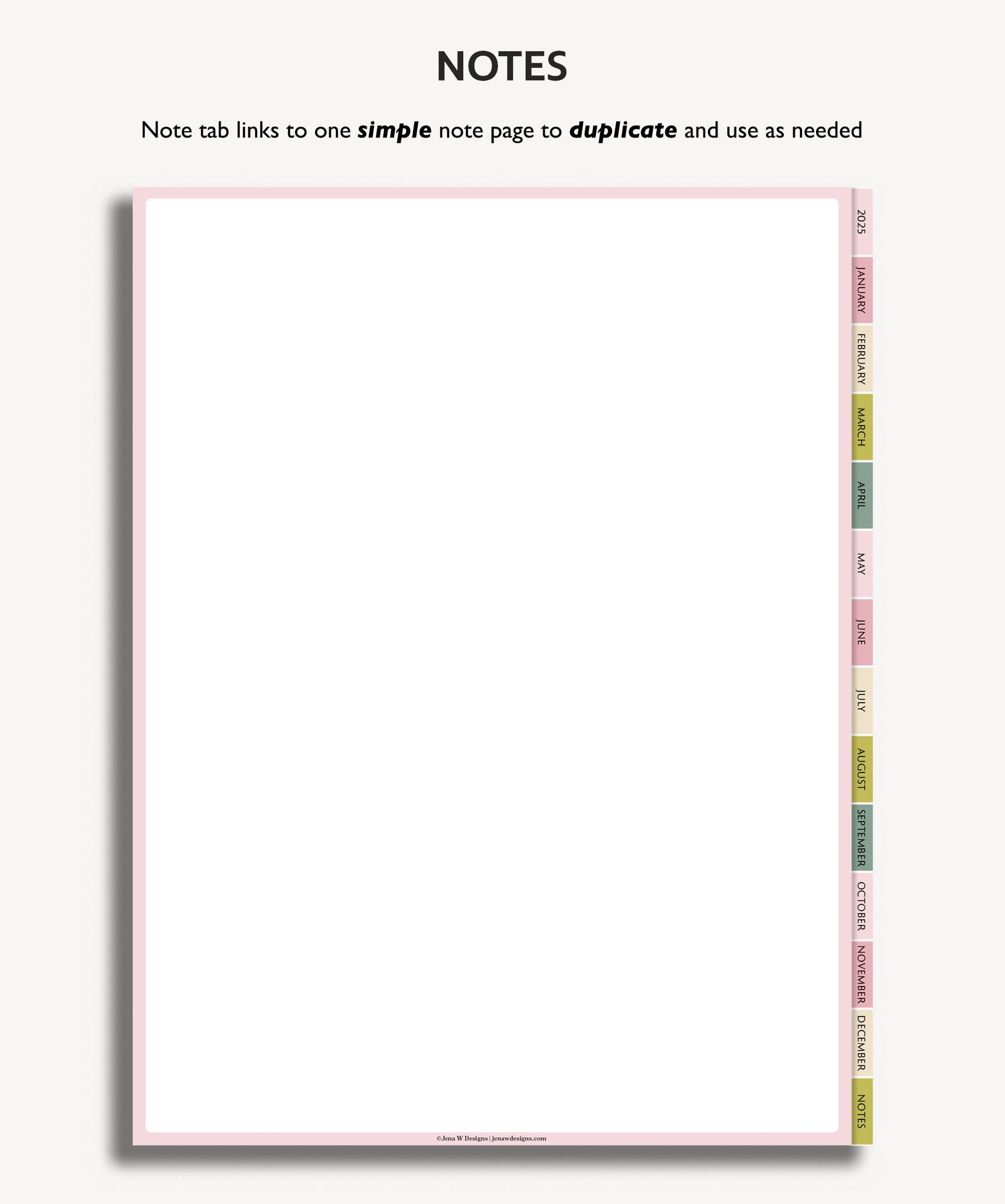 - 1 single blank note page to duplicate and insert anywhere in the planner