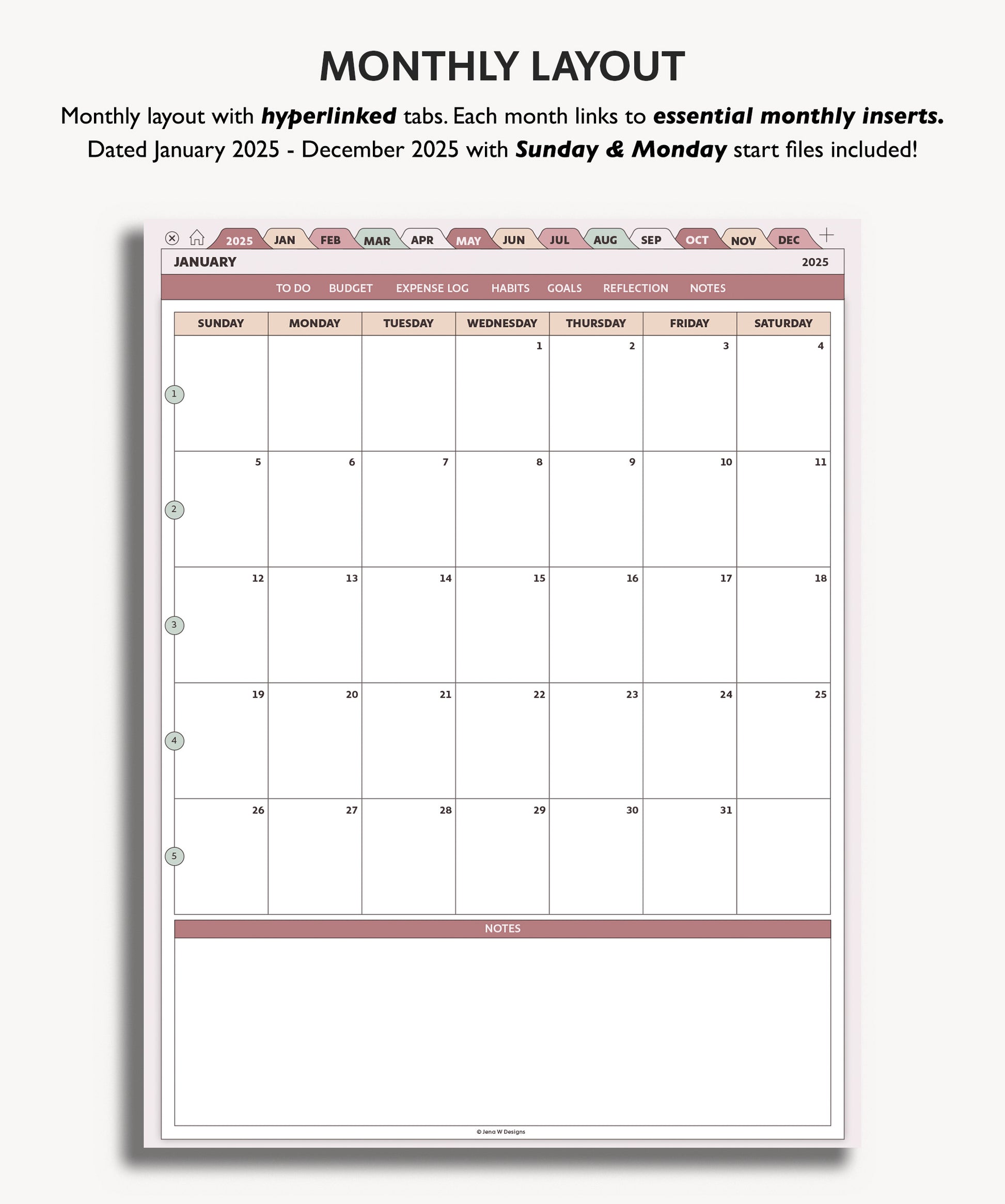 - 2 hyperlinked pdf files of your digital planner ( 1 Sunday and 1 Monday Start) to use in your preferred annotated hyperlink app such as GoodNotes. Review the compatibility tab if you would like to learn more about apps that work with digital pdf templates.