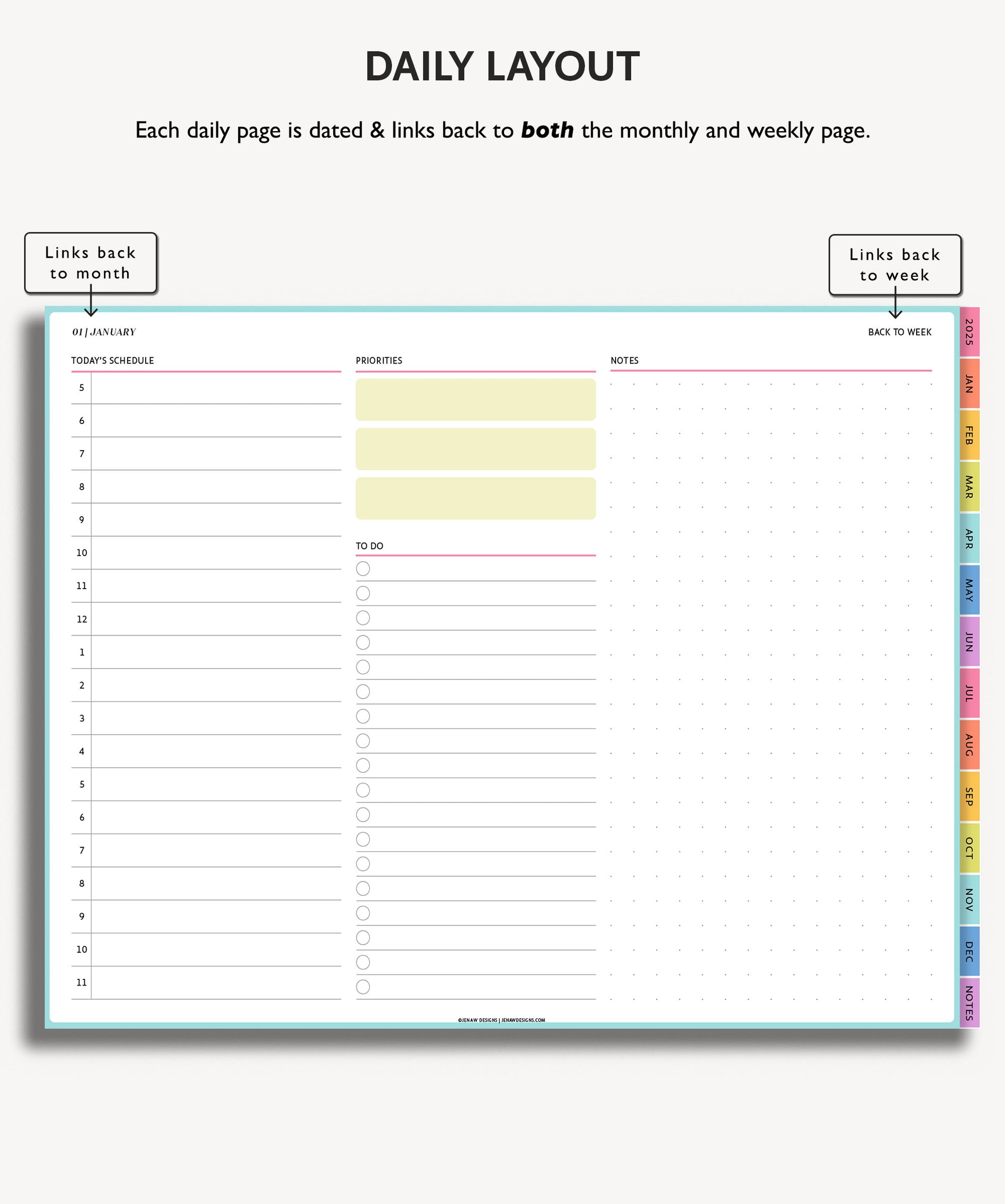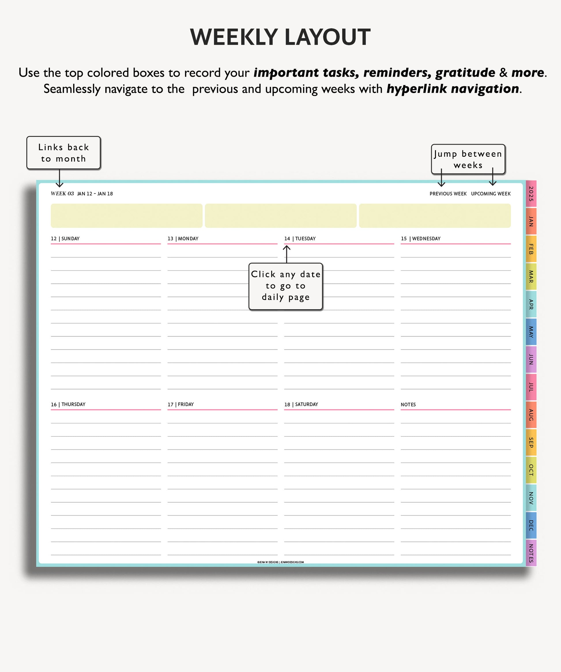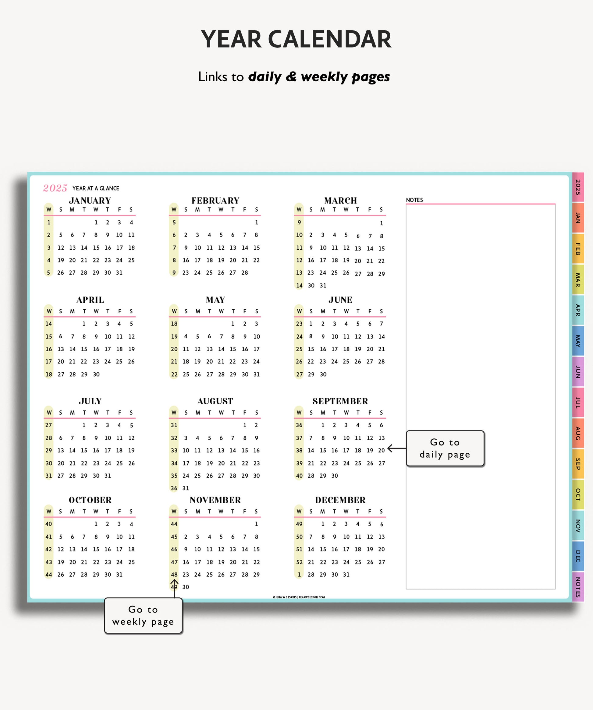 This paperless planner template is designed to be used with an annotated hyperlinks app such as GoodNotes.