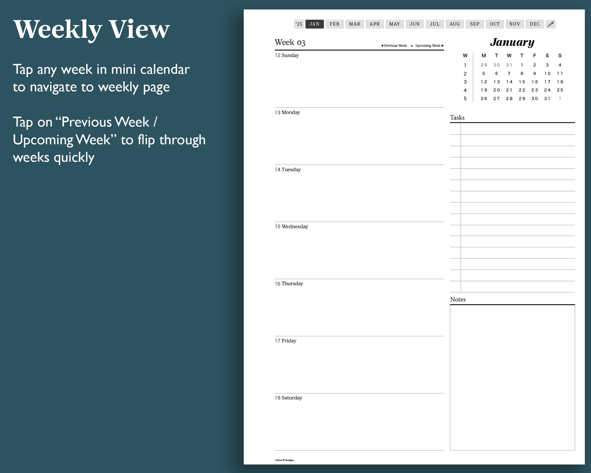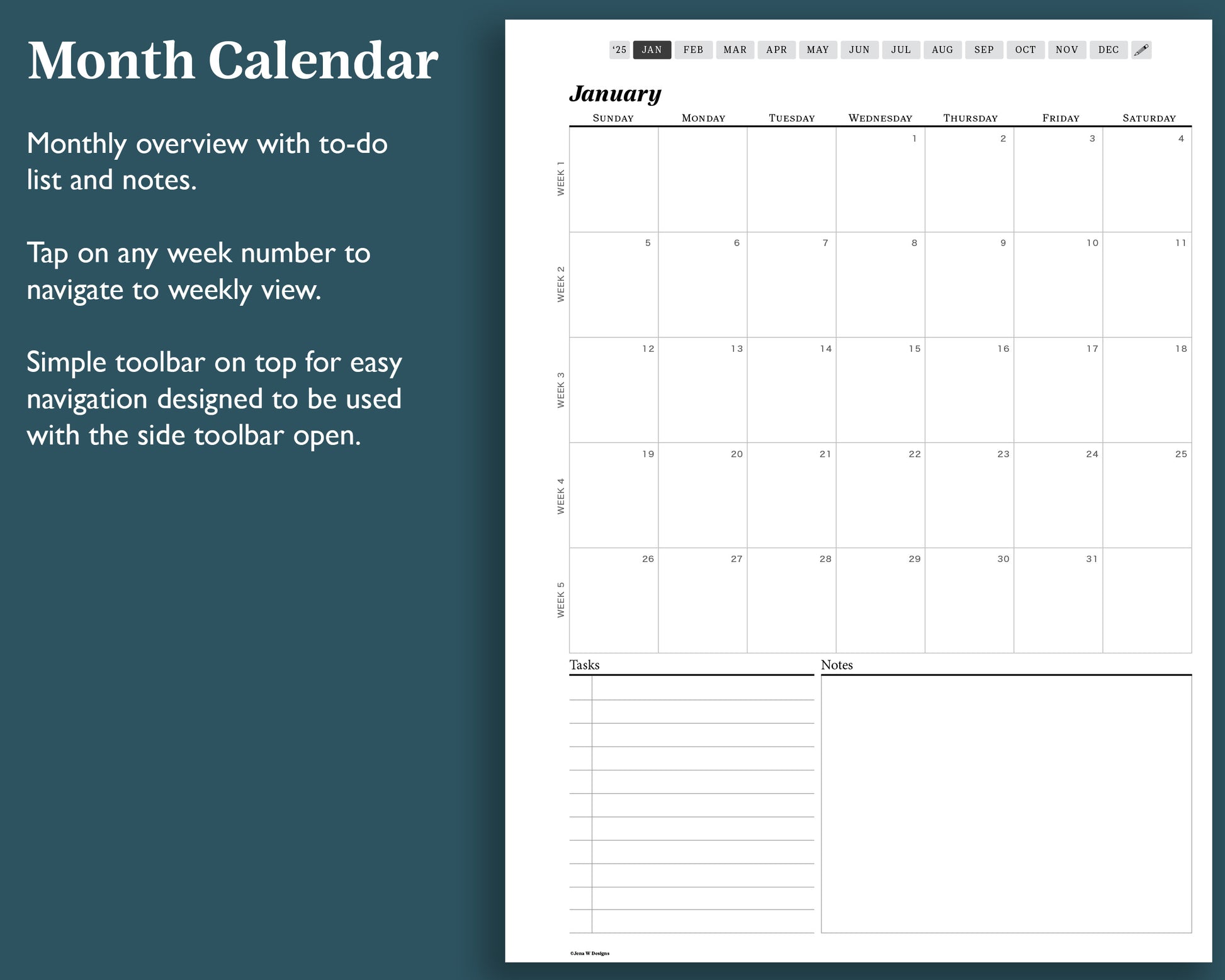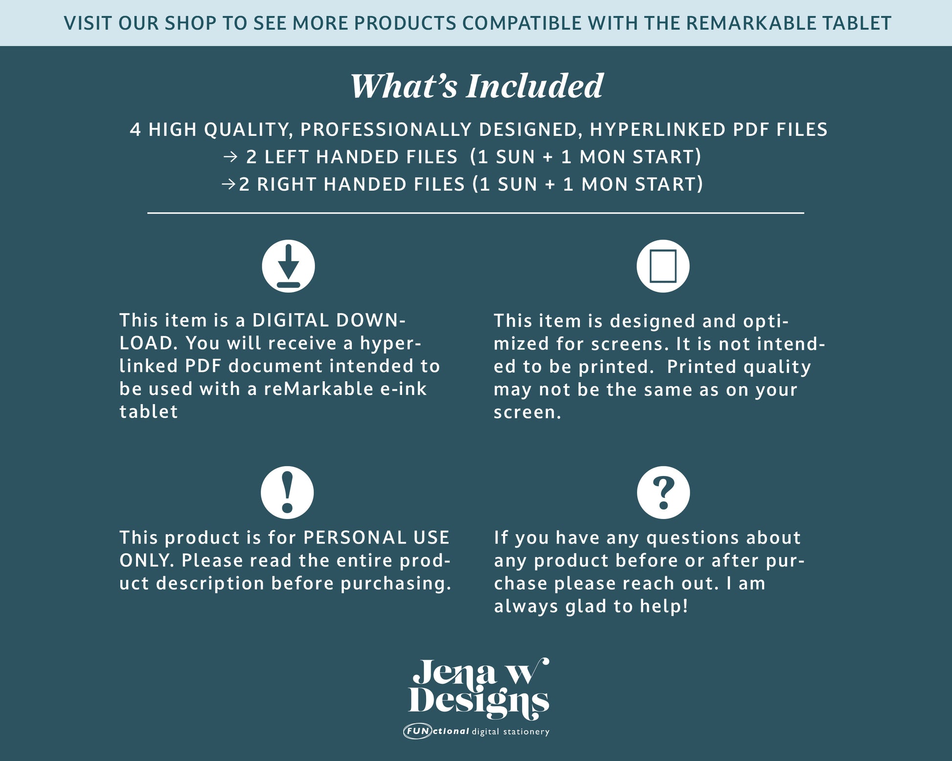 This digital planner is designed to fit your reMarkable screen while keeping the toolbar open.