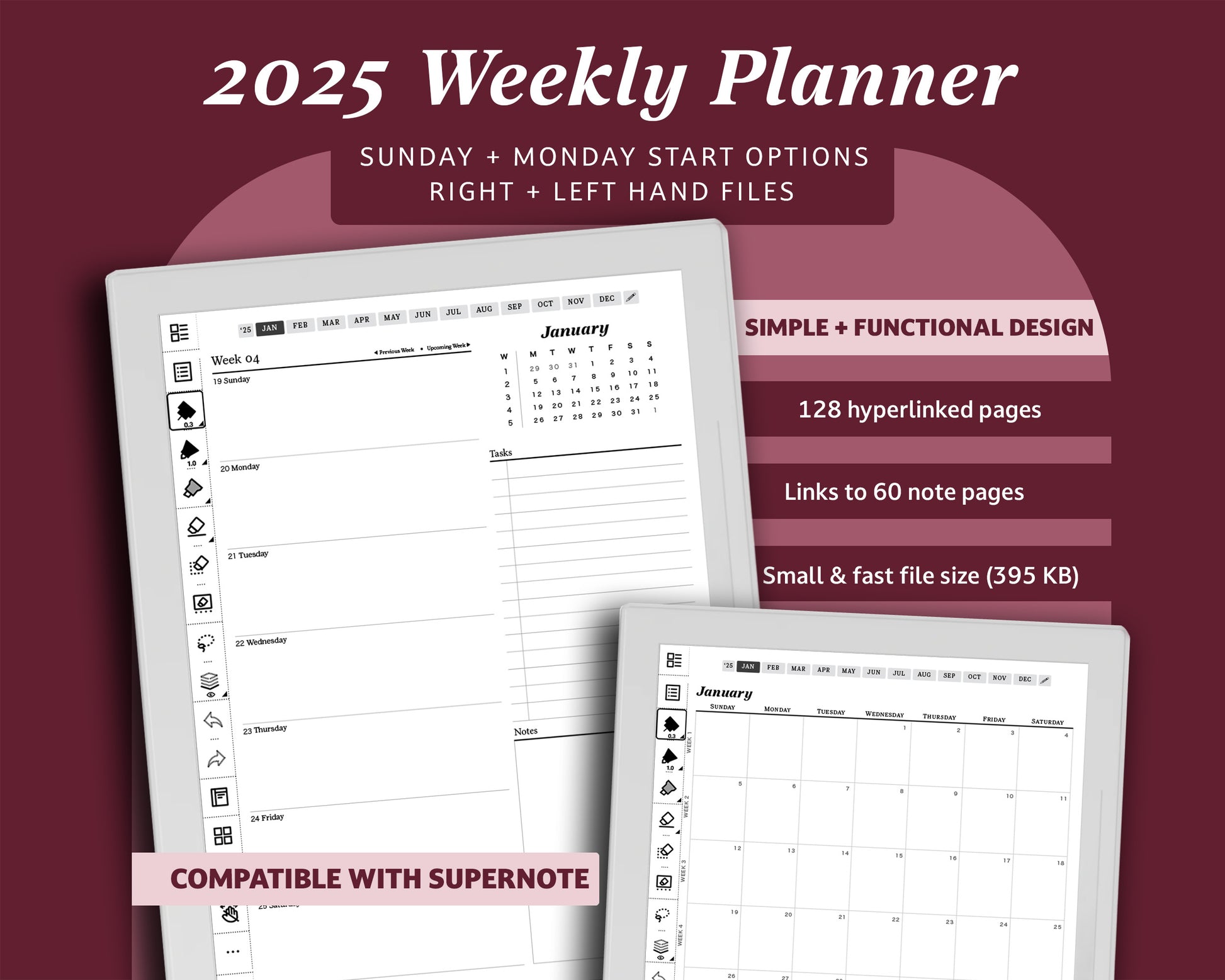 Plan your monthly & weekly tasks with a simple and functional dated digital planner compatible with the supernote e ink tablet.