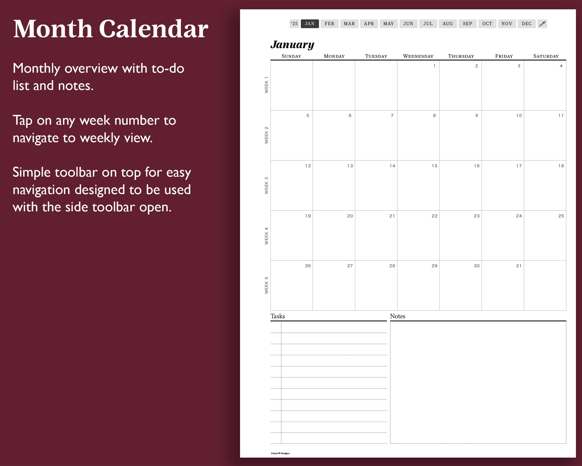 This digital planner is designed to fit your Supernote screen while keeping the toolbar open
