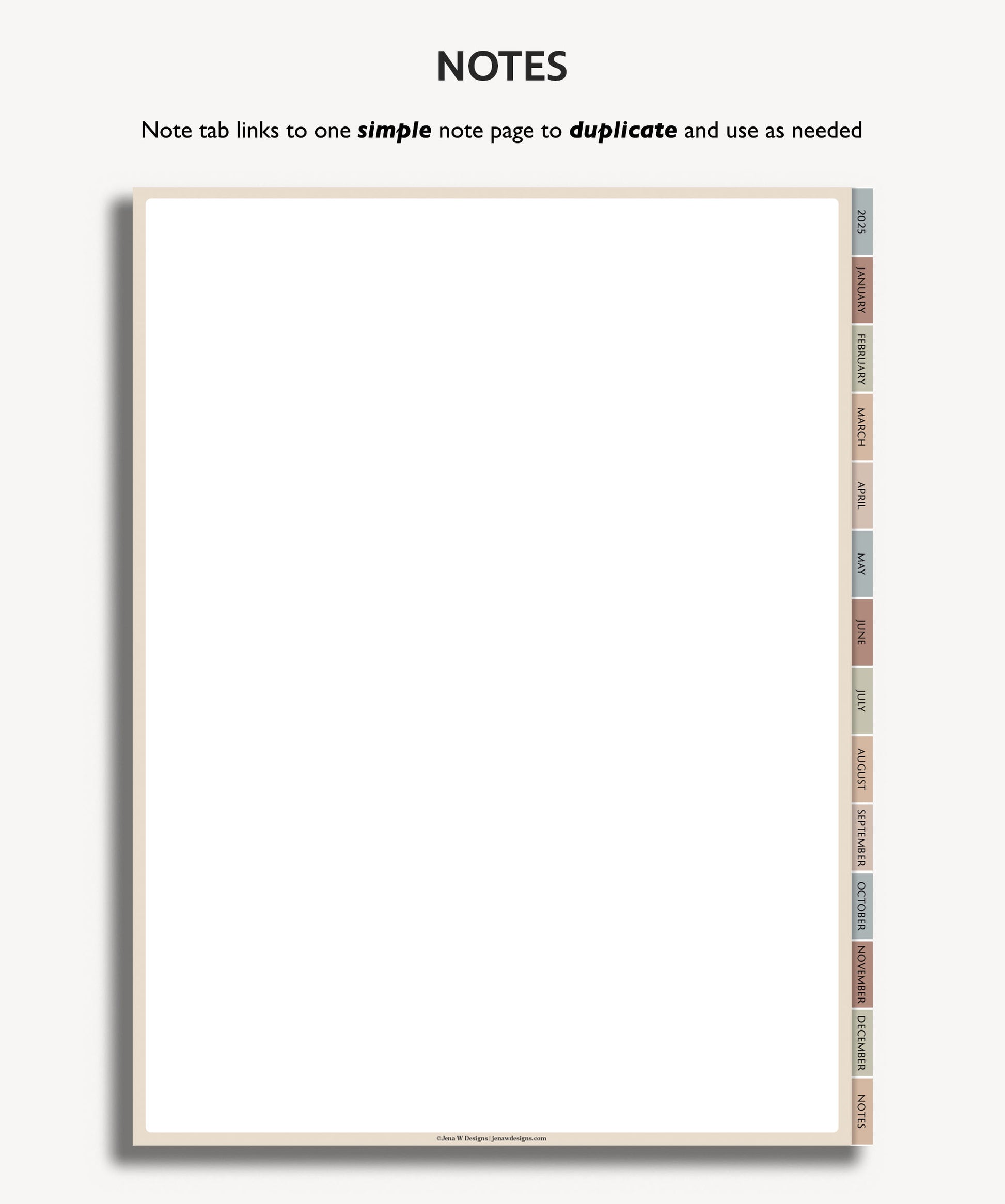 - 1 single blank note page to duplicate and insert anywhere in the planner