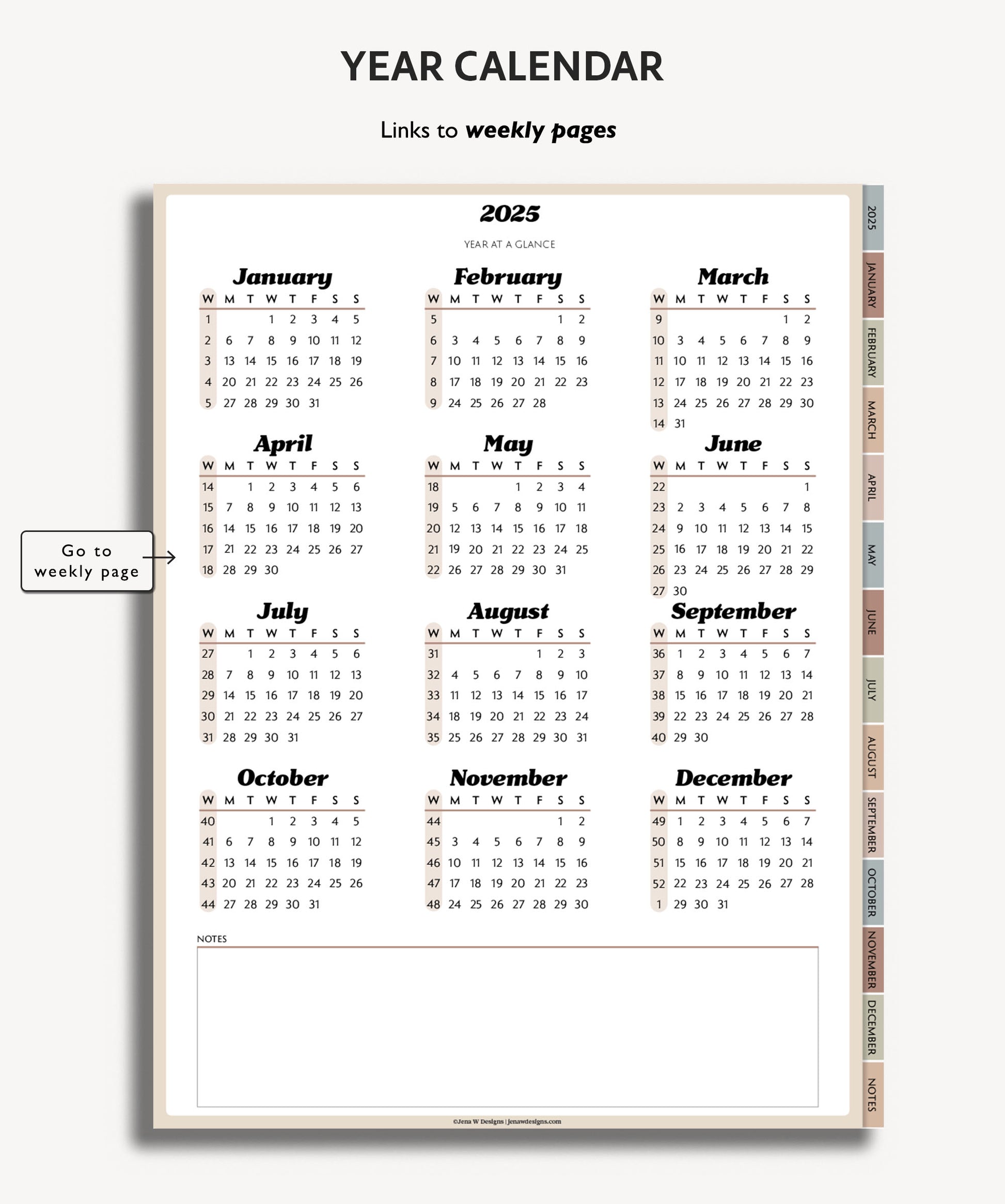 Stay organized and on top of your game with our 2025 Weekly Planner. Our minimal, modern design is perfect for those who want a no-fuss agenda. Featuring monthly and weekly planning pages, our planner will help you efficiently plan your days without any overwhelming features.