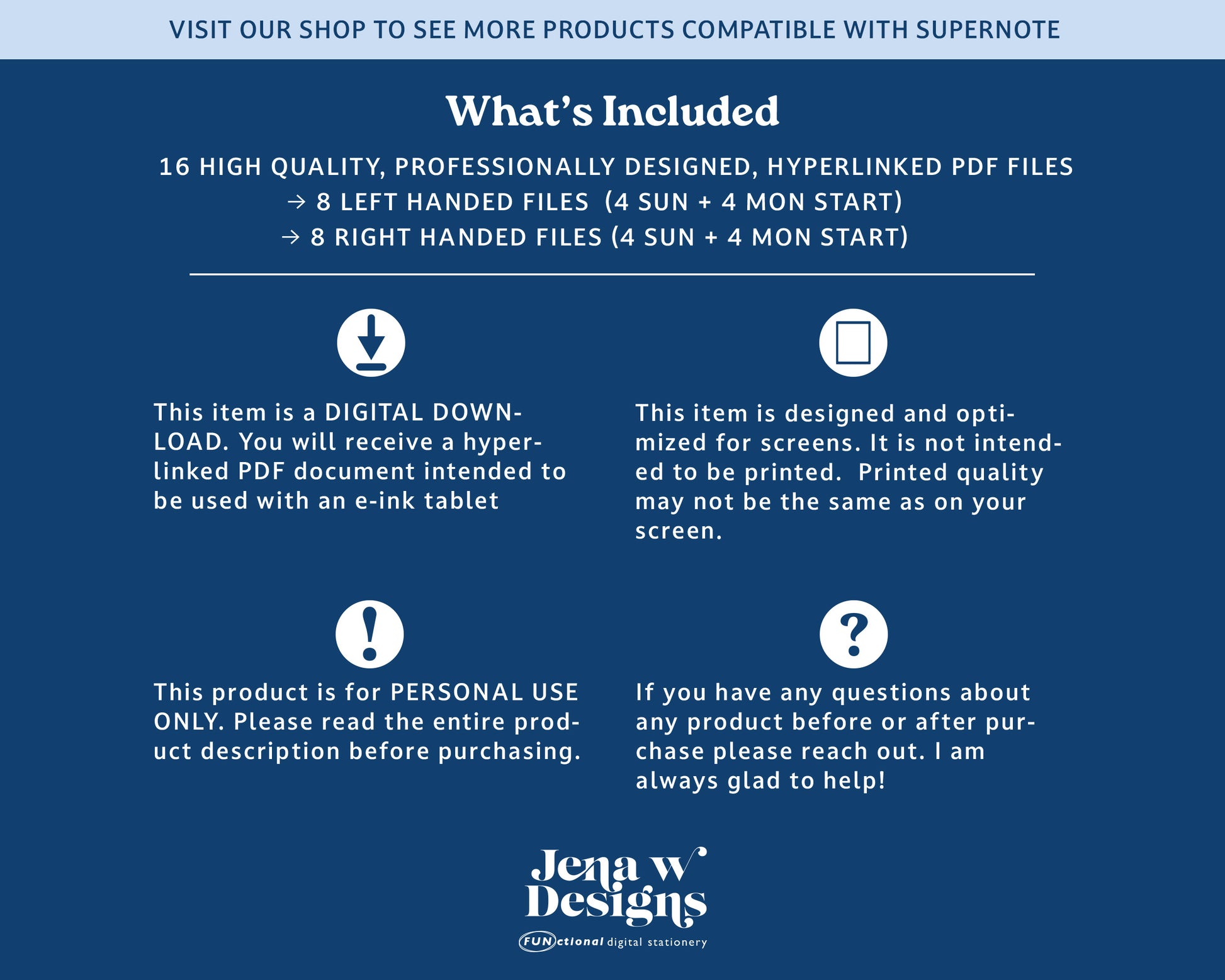 This pdf planner is designed and optimized for use with the Supernote e-ink tablet.