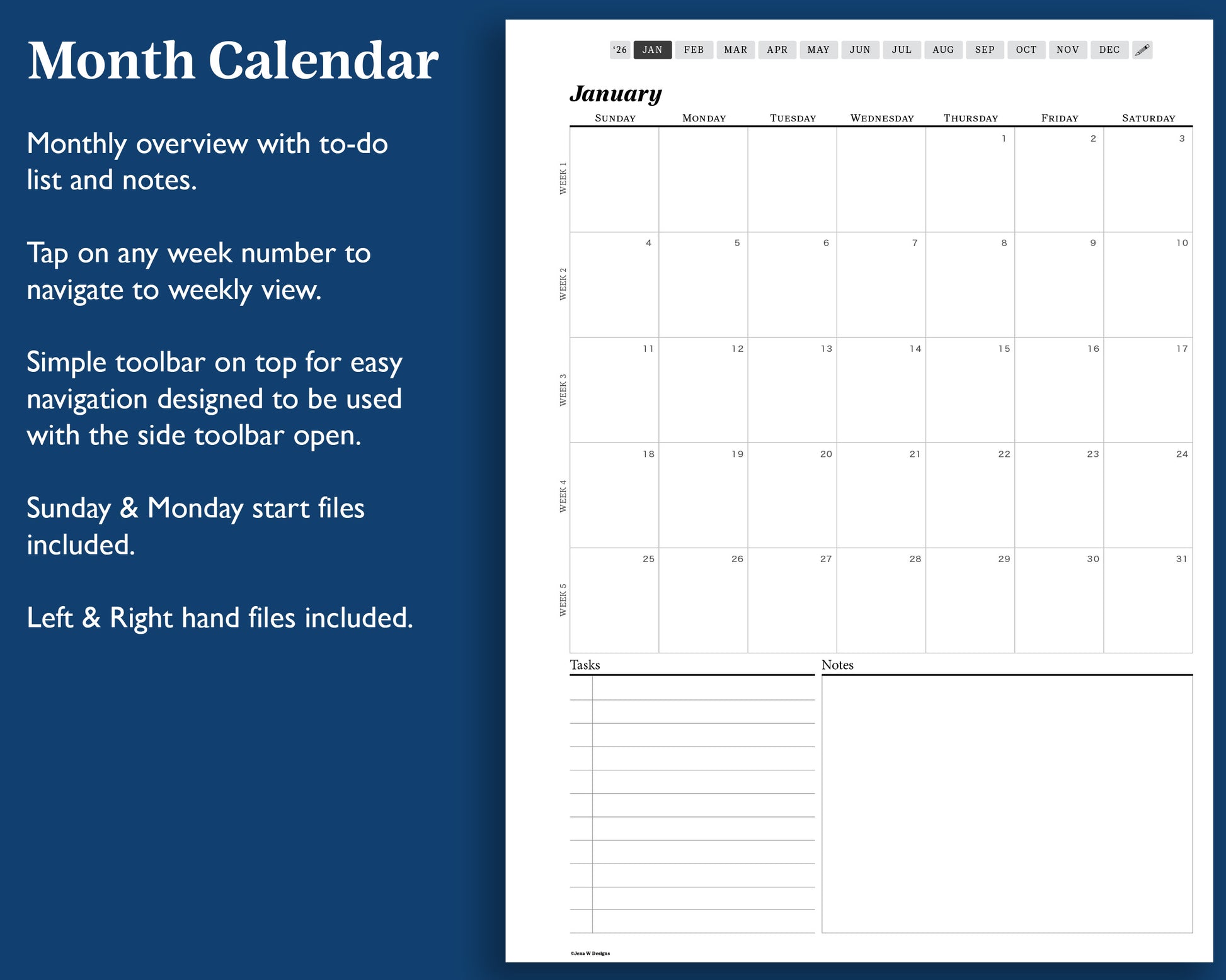 This pdf planner is designed and optimized for use with the Supernote e-ink tablet.