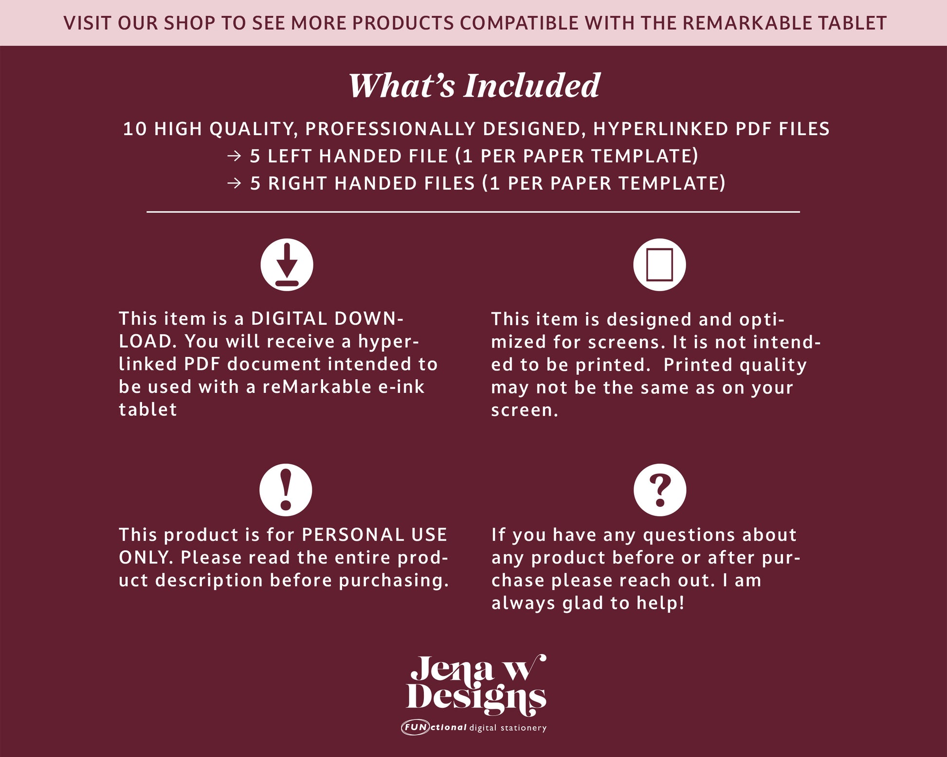 This pdf planner is designed and optimized for use with the Supernote e-ink tablet.