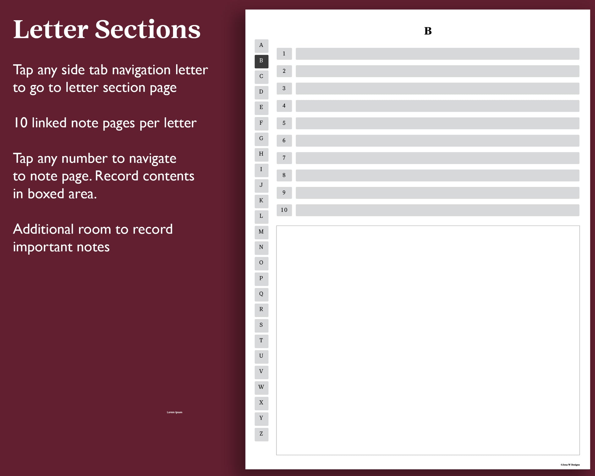 Organize all of your notes, important contacts, birthdays and anniversaries and more with a simple alphabet tabbed notebook compatible with the Supernote tablet.