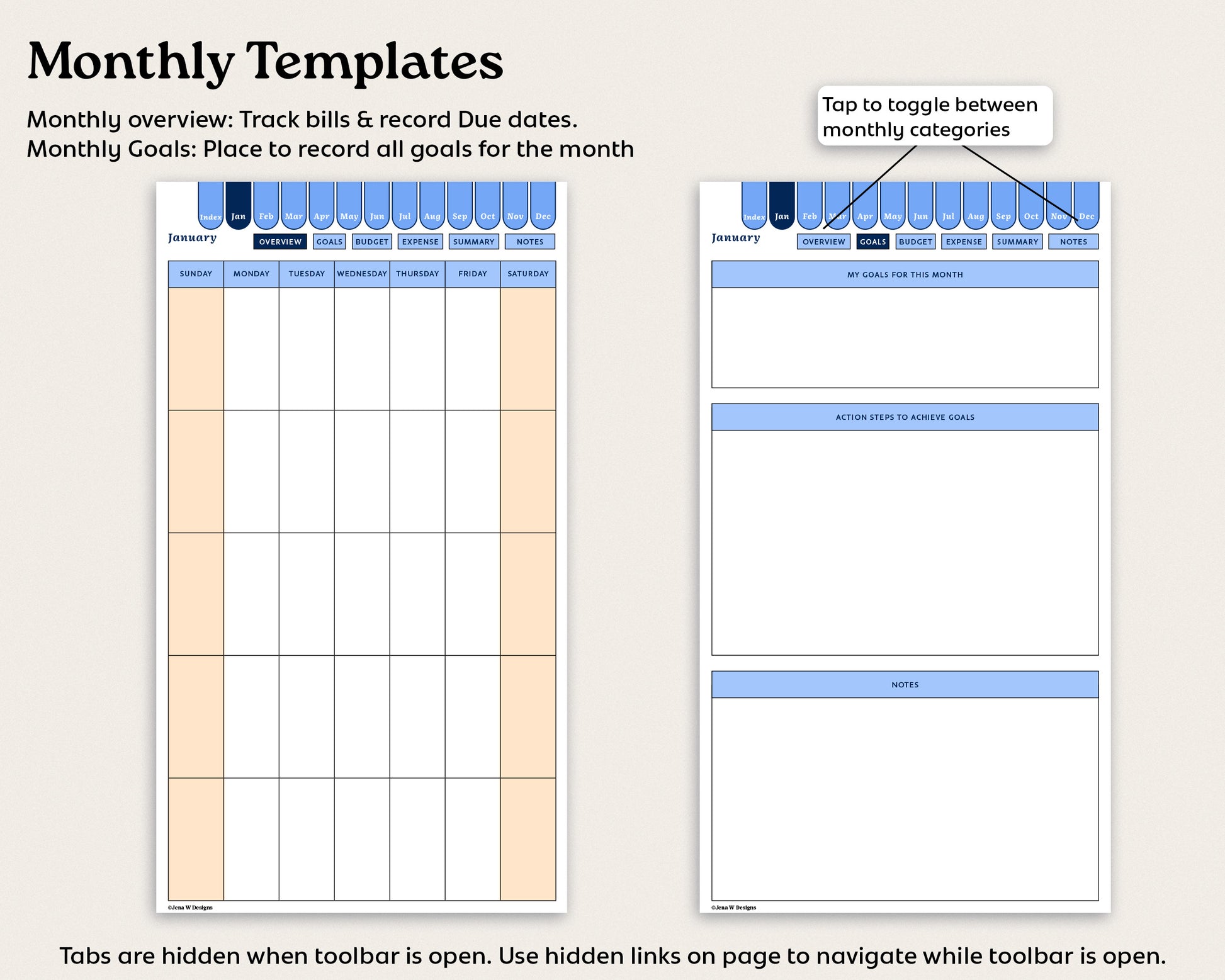 This digital planner is designed to fit your reMarkable pro screen while keeping the toolbar open or closed.