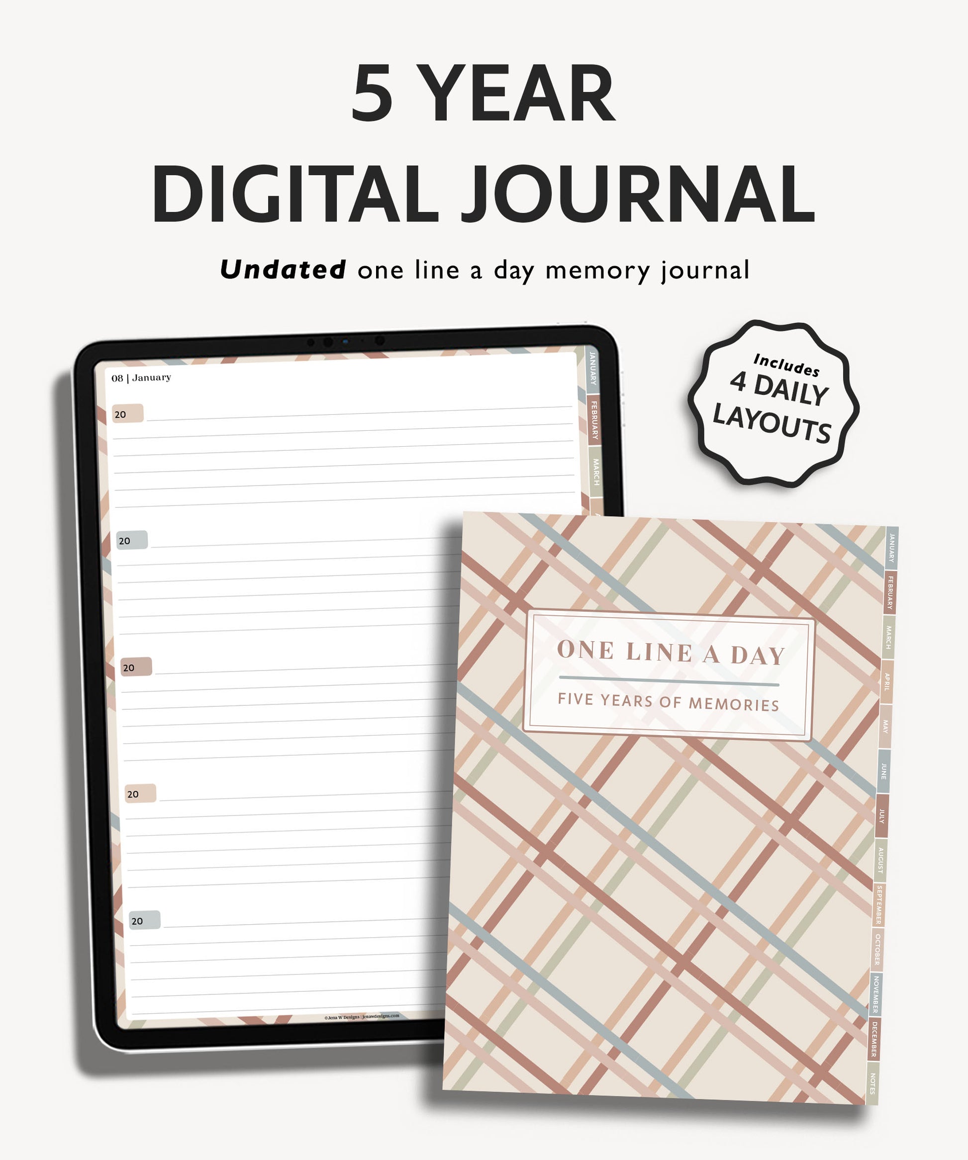 Daily journal, practice gratitude, record memories and more with this fully hyperlinked and reusable five year daily journal for your iPad or Android tablet.
