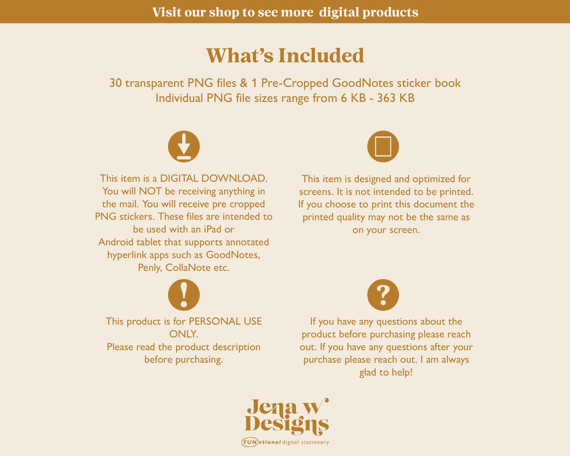 - 30 transparent PNG files & 1 Pre-Cropped GoodNotes sticker book