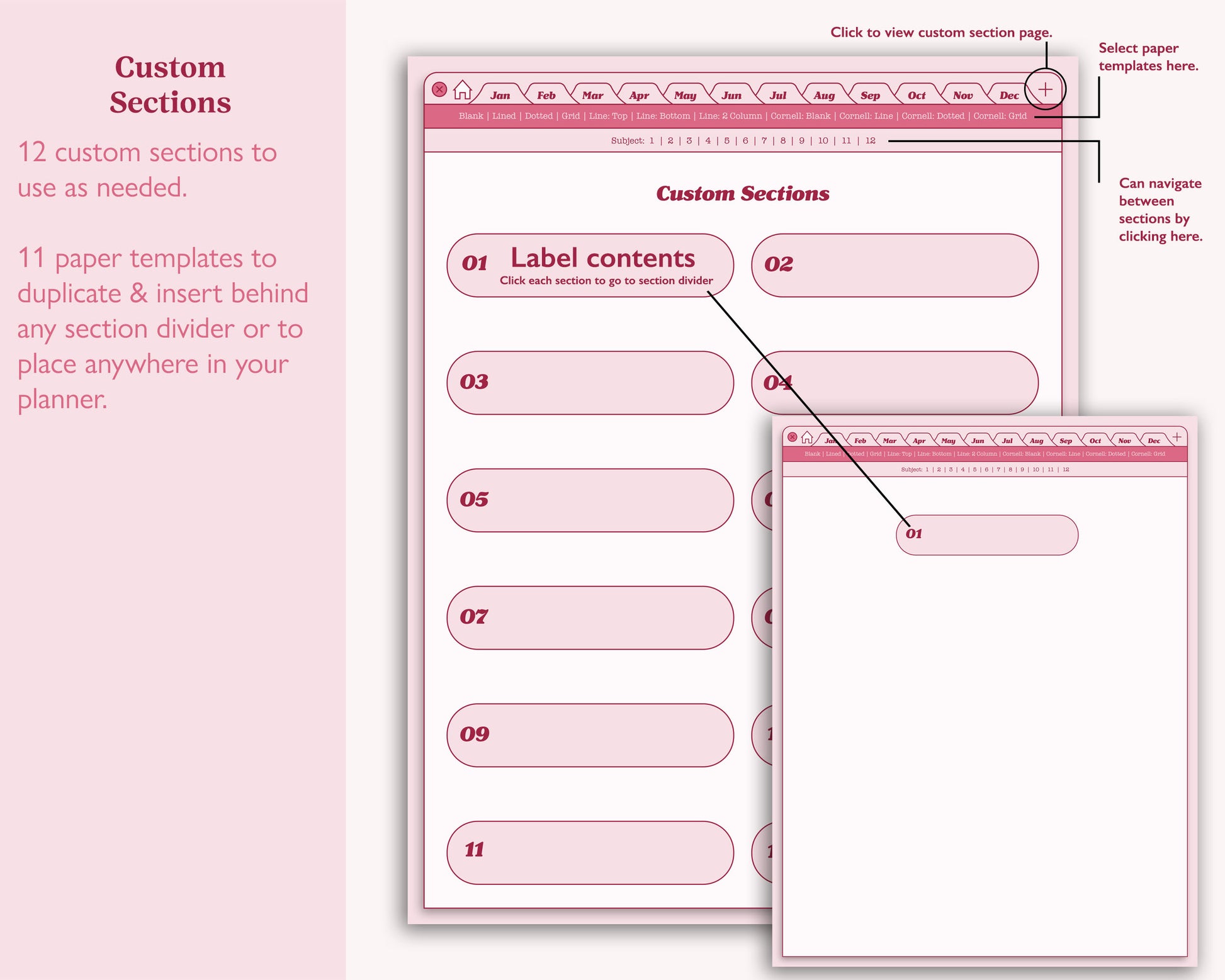 • 12 custom sections to use as needed
