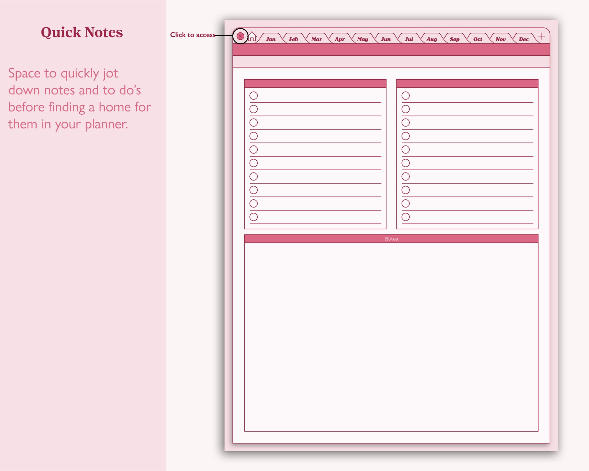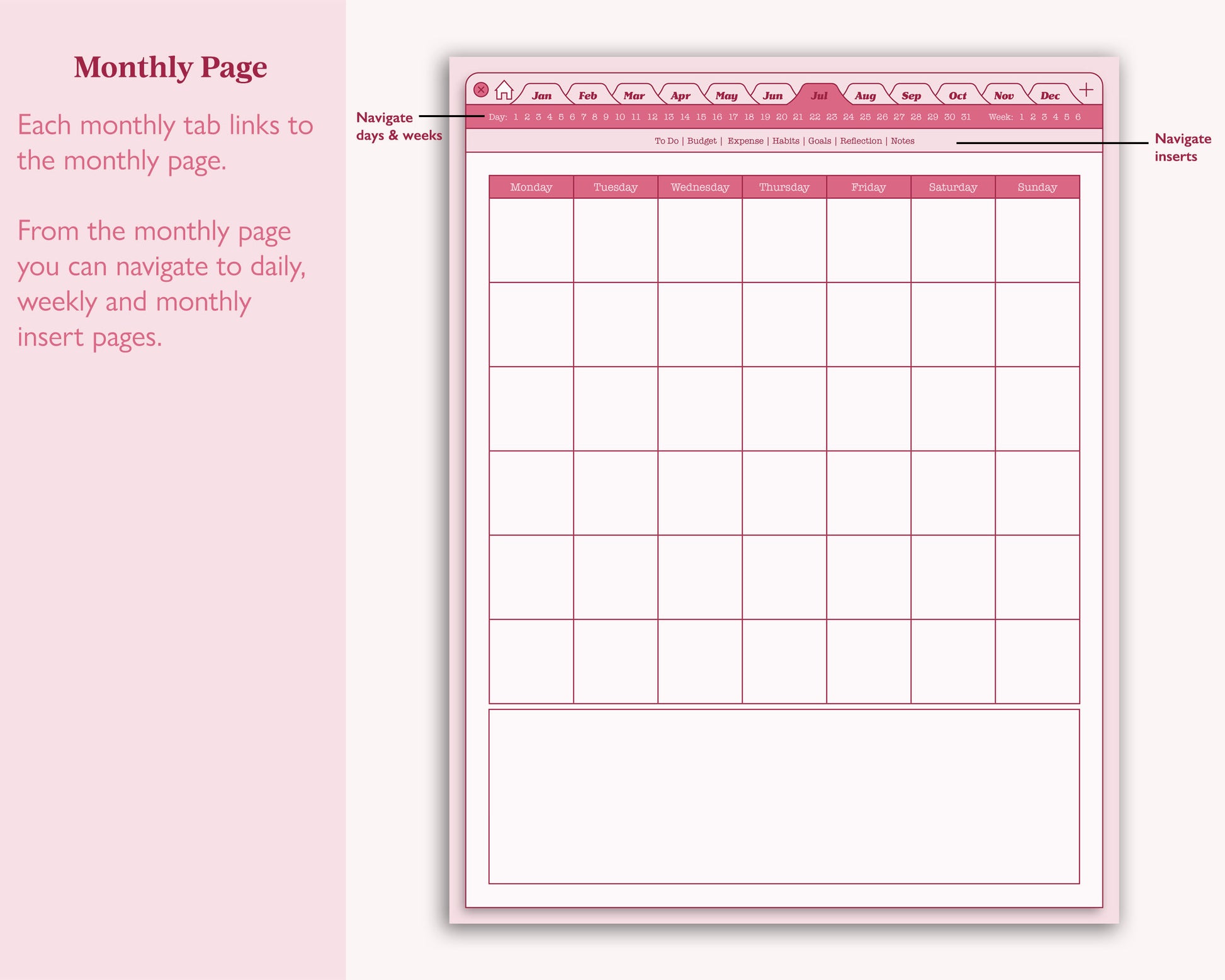 This planner is designed to be used with an annotated hyperlinks app such as GoodNotes.