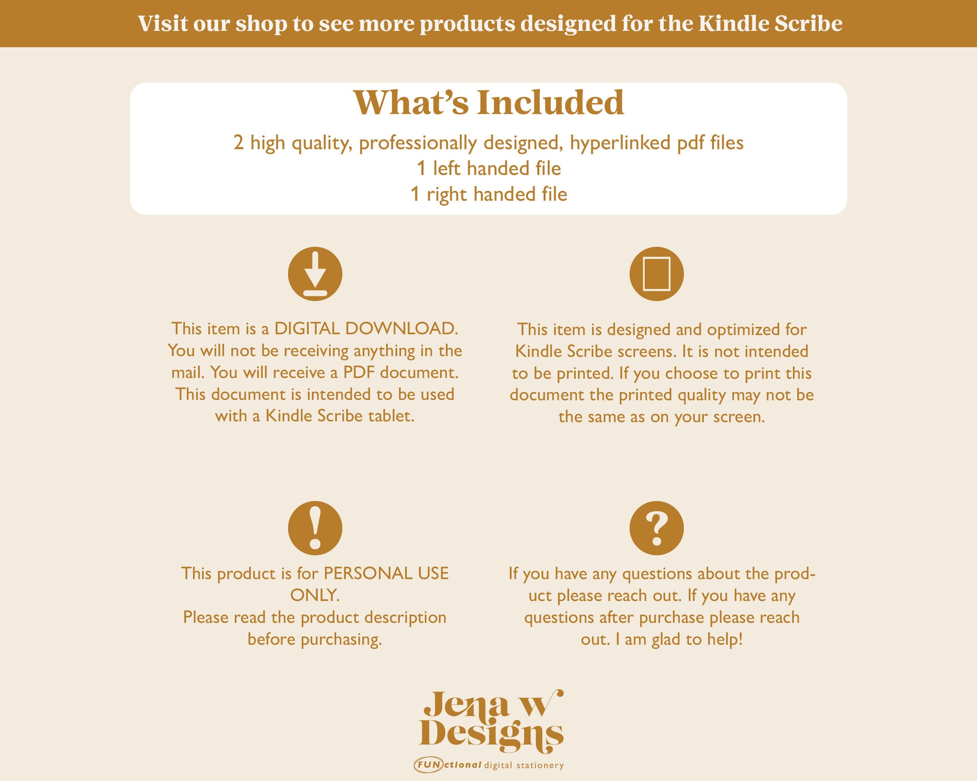This paperless journal template is designed to be used with a Kindle Scribe tablet that supports hyperlinks.