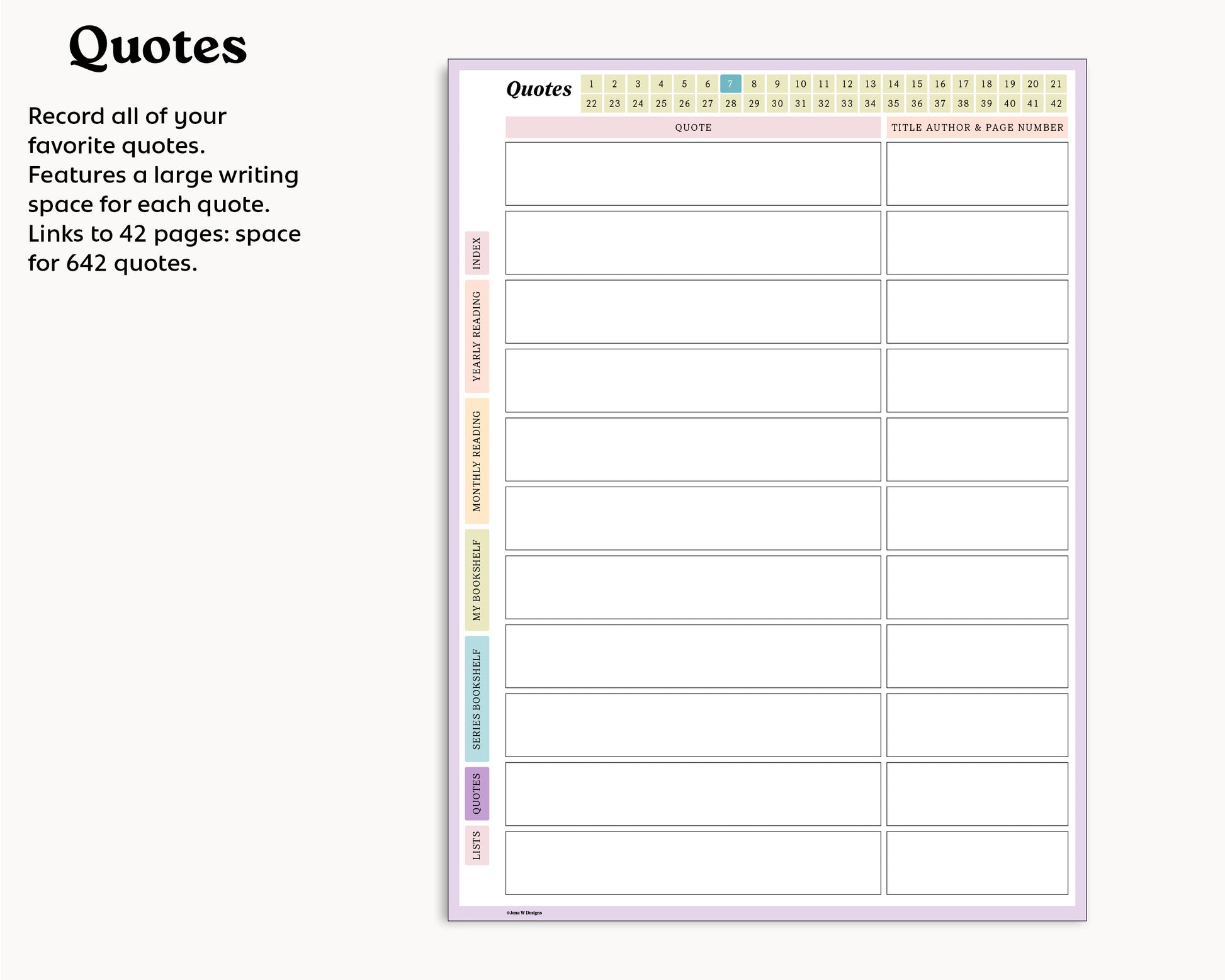 - 42 quote pages holding up to 462 quotes