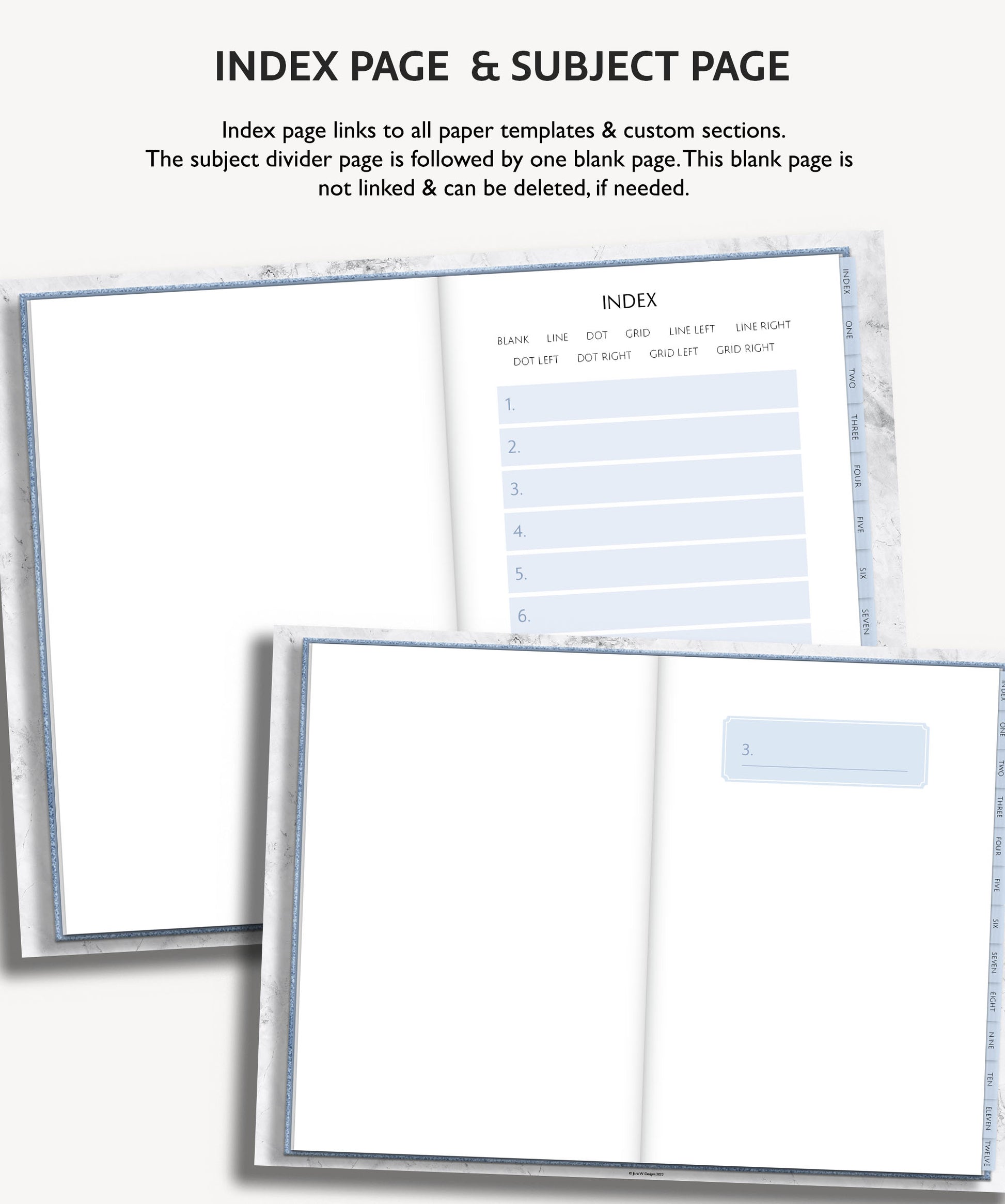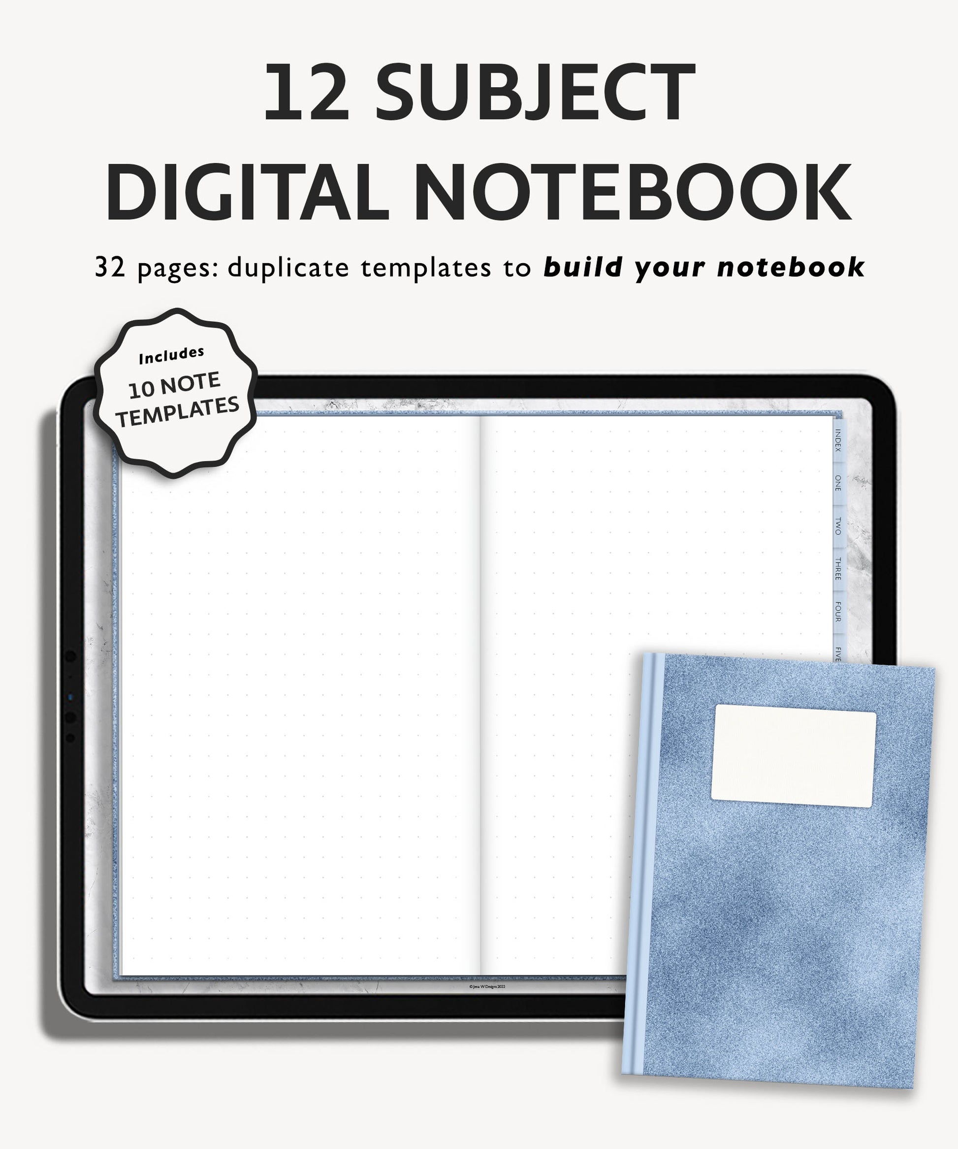 Take notes in a realistic velvet digital notebook. This 12 subject hyperlinked tab notebook contains 10 paper styles to take notes as you need, when you need. Fun layout with maximum room for note-taking, to do lists, brain dumps and more!