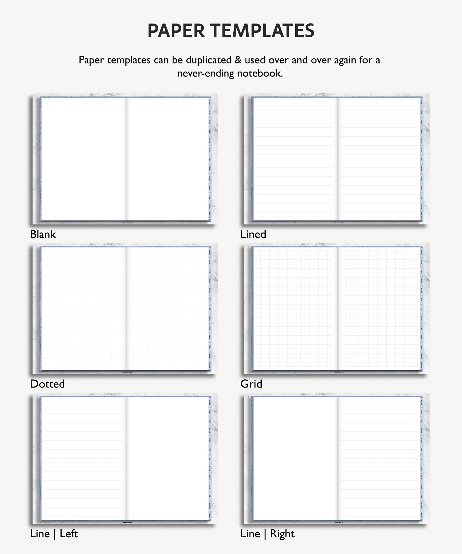 This paperless planner template is designed to be used with an annotated hyperlink app such as GoodNotes.