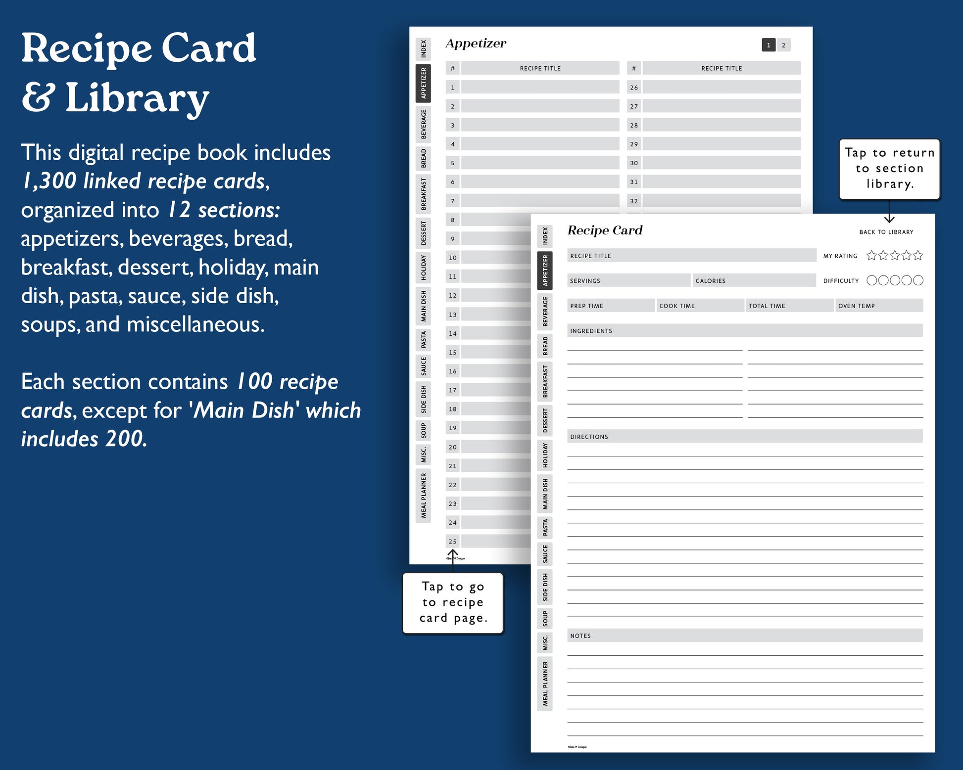 - 1,300 Linked Recipe Cards – Quickly access, add, and edit recipes with seamless navigation.