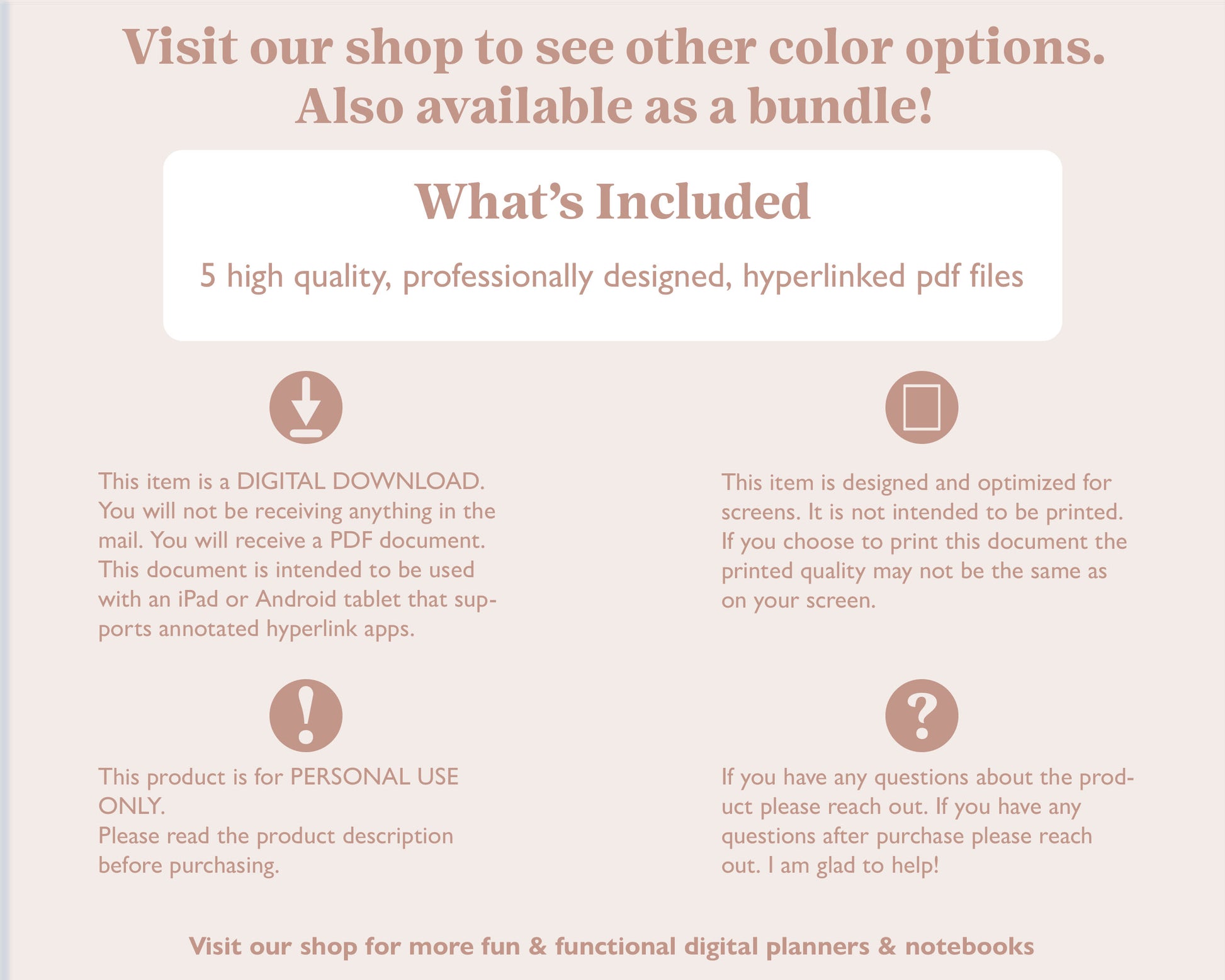 - 5 hyperlinked pdfs of your digital journal to use in your preferred annotated hyperlink app such as GoodNotes. Review the compatibility tab if you would like to learn more about apps that work with digital pdf templates.